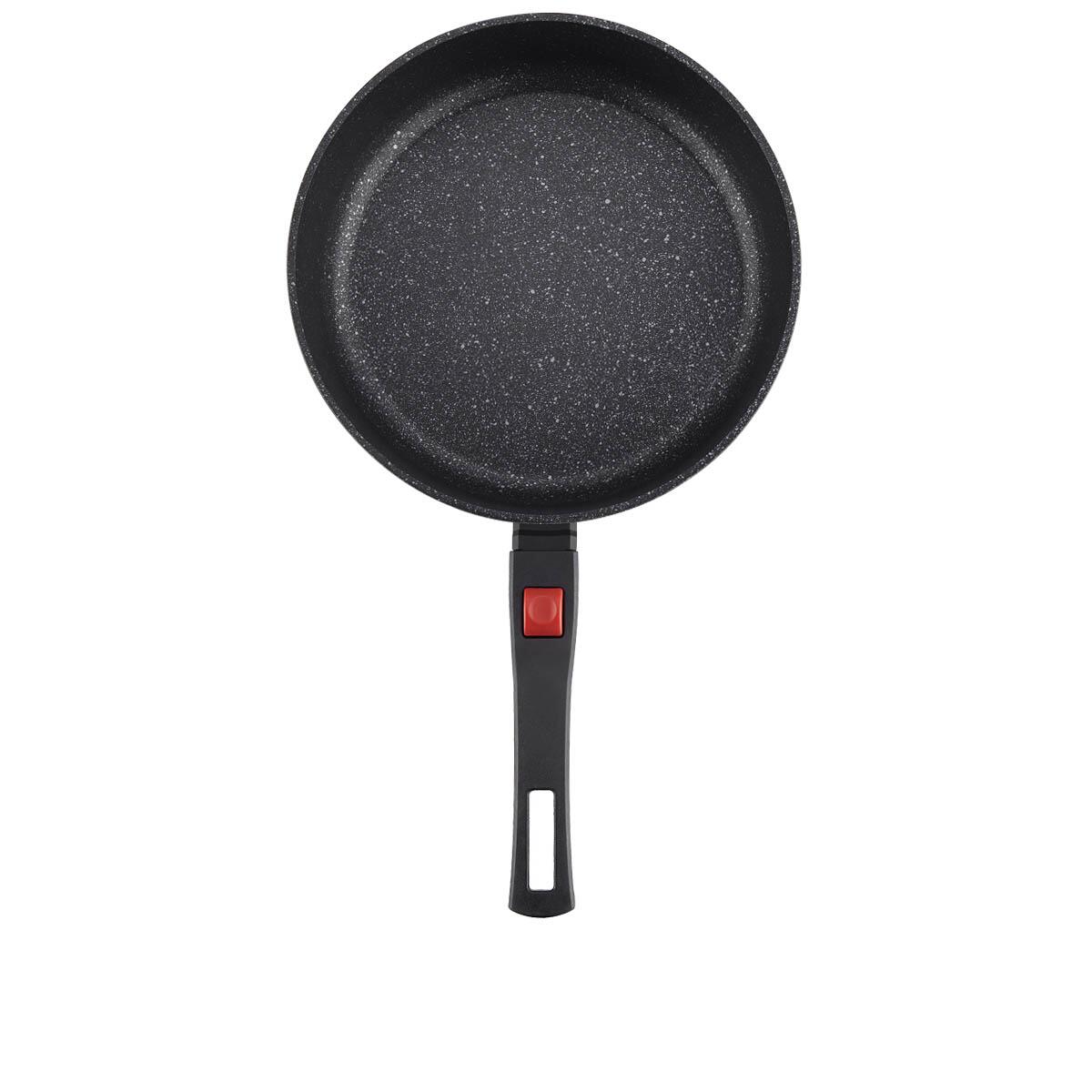 Корпус изготовлен из высококачественного алюминия, который обеспечивает равномерное распределение тепла и устойчивость к деформации даже при частом использовании. Внутреннее антипригарное покрытие Granite предотвращает пригорание пищи и требует минимального количества масла, что делает готовку более полезной и комфортной. Поверхность легко очищается и не впитывает запахи, сохраняя посуду как новую долгие годы.