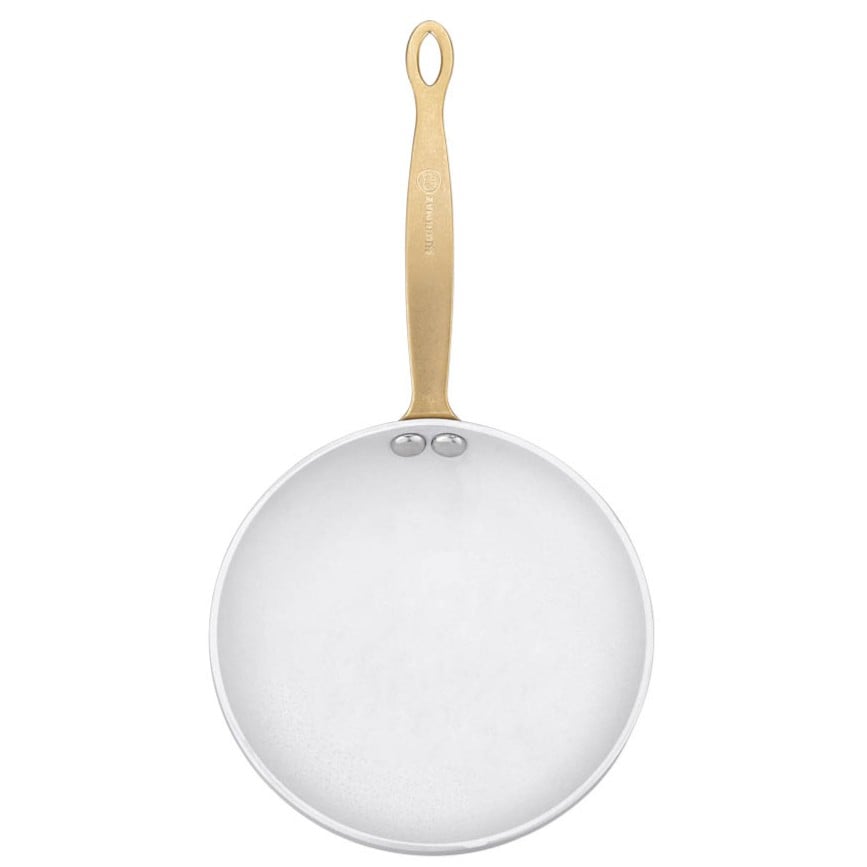 Корпус изготовлен из алюминия с антипригарным покрытием, которое не содержит вредных веществ (PFOA-free) и обеспечивает лёгкую очистку после использования. Благодаря оптимальной толщине стенок сковорода быстро нагревается и равномерно распределяет тепло, сохраняя вкус и структуру ингредиентов.