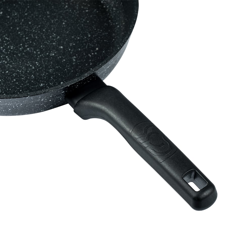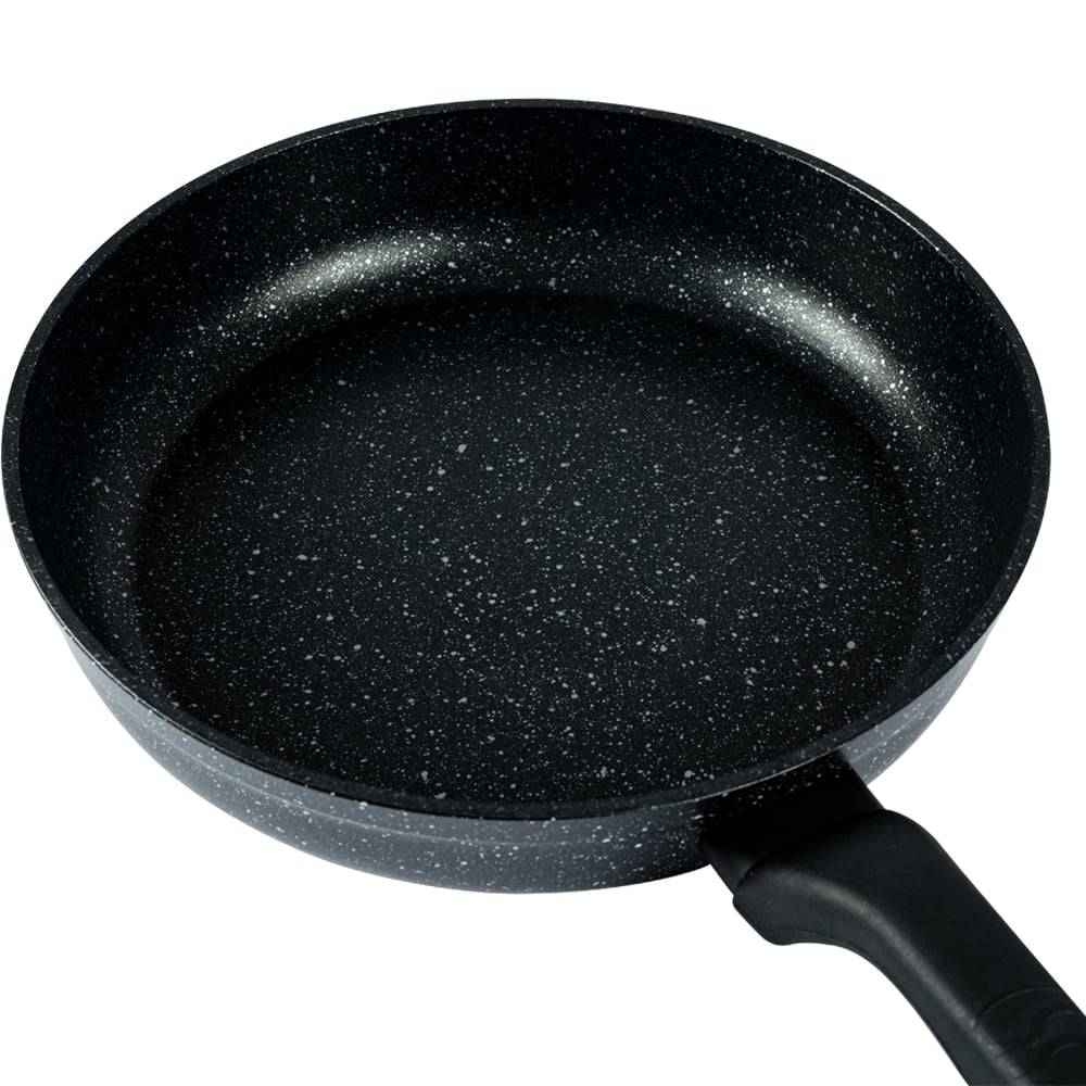 • Прессованный алюминий с высокотехнологичным гранитным покрытием — тепло распределяется равномерно, еда не пригорает