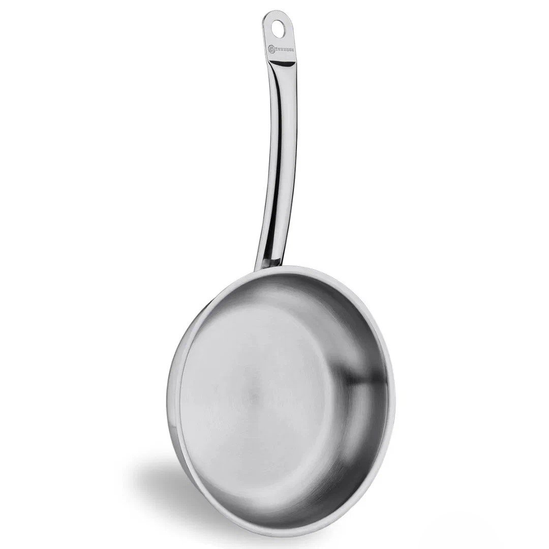 Полированная зеркальная поверхность придаёт сковороде привлекательный внешний вид и облегчает очистку. Её можно мыть вручную или в посудомоечной машине — материал устойчив к царапинам и не теряет блеска.