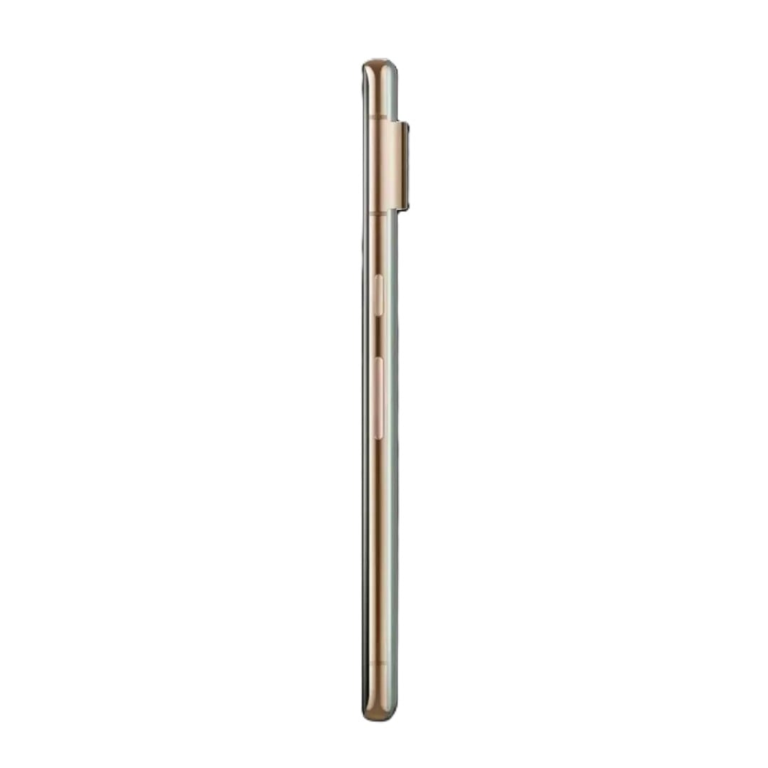 ** Hazel — премиальный стиль:** Уникальное сочетание серо-зеленого стекла и золотистой алюминиевой рамки выделяет смартфон среди конкурентов, подчеркивая его статусность.