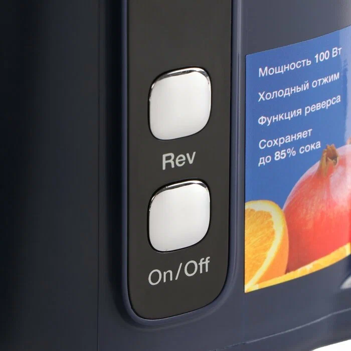 Для удобства предусмотрен режим реверса, который помогает справляться с волокнистыми продуктами и предотвращает заклинивание шнека. Также модель оборудована индикатором уровня сока и системой автоматического выброса мякоти.