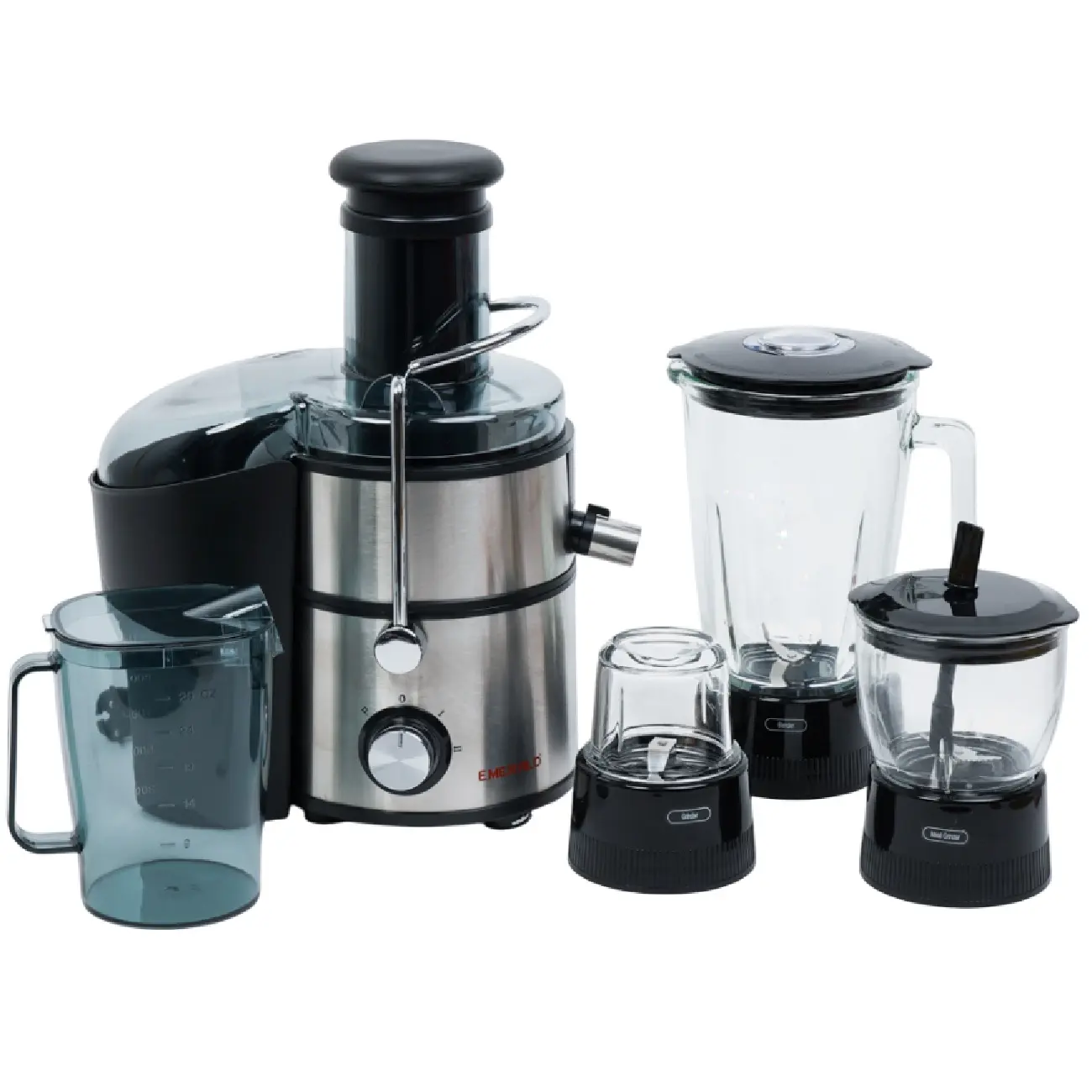 Emerald EK-712 сочетает в себе функциональность кухонного комбайна и эффективность профессиональной соковыжималки. Благодаря центробежной системе отжима, сок получается прозрачным, без мякоти, с максимумом витаминов и аромата. Мотор работает тихо, а корпус устойчив даже при высокой нагрузке.