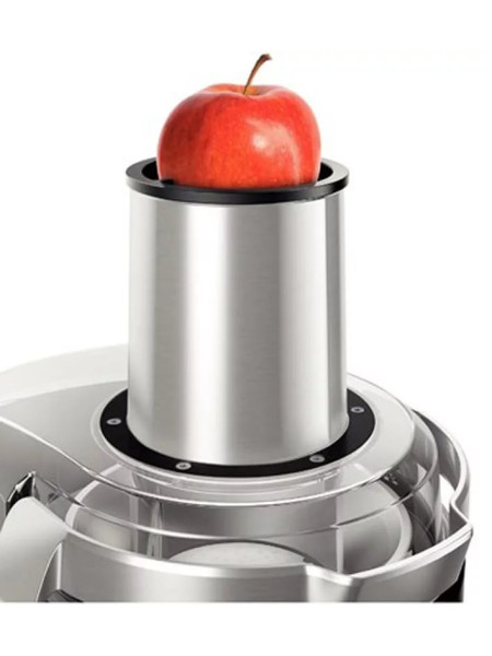 Соковыжималка Bosch MES4010 имеет красивый черно-серебристый корпус из металла с пластиковыми вставками. Модель центробежного типа оснащена 1.5-литровой емкостью для сока и 3-литровой емкостью для отжатой мякоти. Такая емкость резервуаров позволяет готовить сок на большую семью. При этом мощность соковыжималки в 1200 ватт сочетается с 3 рабочими скоростями. Устройство работает с использованием импульсного режима и системы прямой подачи сока. Соковыжималка защищена от случайного включения, имеет опцию автоматического выброса мякоти, широкую (8.4 см) круглую горловину и противокапельную систему. Все эти очевидные достоинства модели невозможно не оценить. Сеточка для фруктов изготовлена из металла и прослужит долгие годы. Устройство способно отжимать овощи и фрукты целиком.