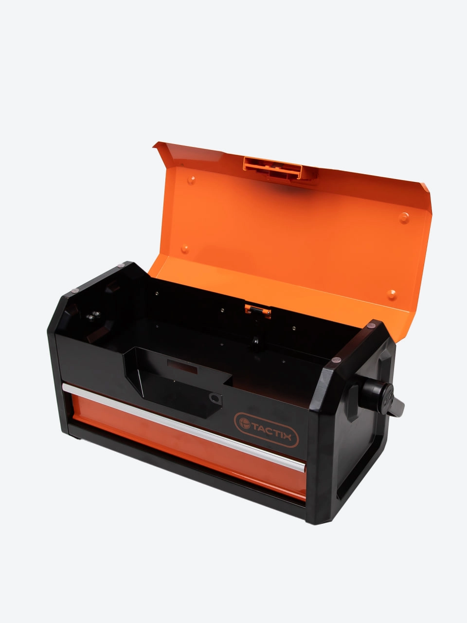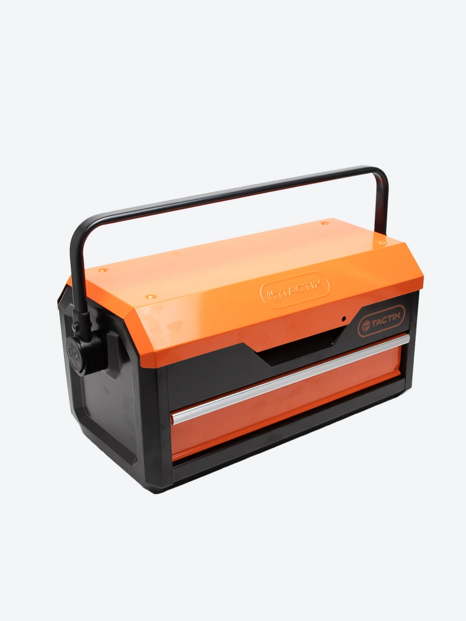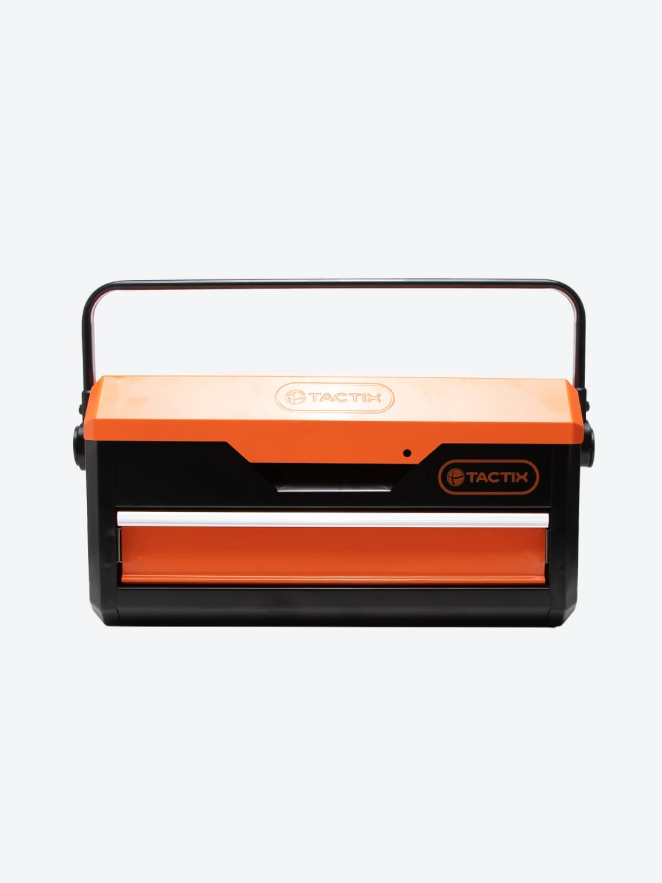 Tactix 321212 — bu mustahkam po‘latdan yasalgan asboblar yashigi, professional ustalar va talabchan foydalanuvchilar uchun ishlab chiqilgan. Po‘lat korpus tufayli u og‘ir yuklamalarga va mexanik ta’sirlarga yuqori darajada chidamli.