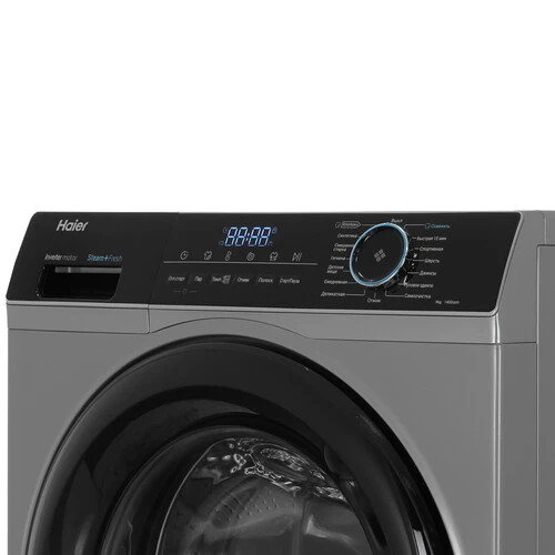 Haier HW90-BP14929AS — это сочетание современного дизайна и передовых технологий. Эффектный серебристый корпус, черная дверь с глубоким глянцем и лаконичная черная панель управления создают впечатление дорогой, солидной техники, которая станет украшением любой современной квартиры.