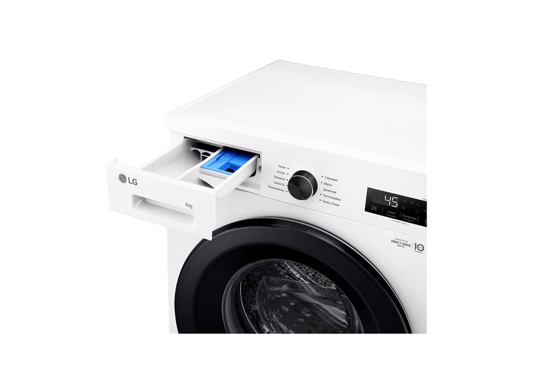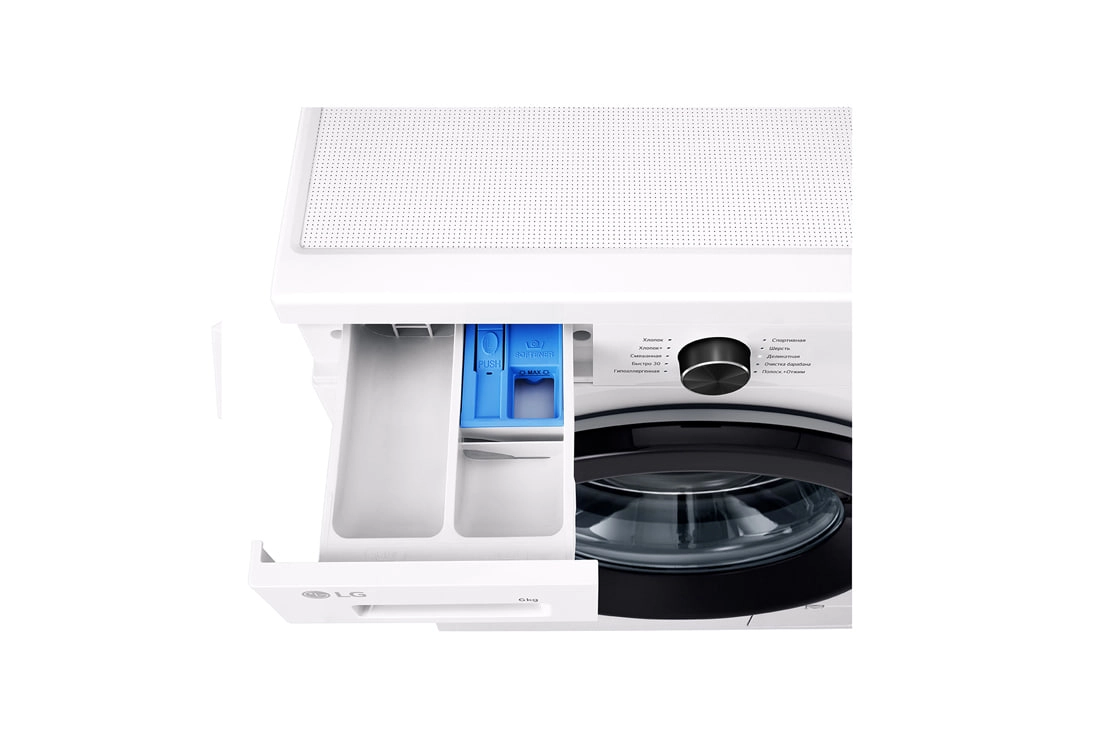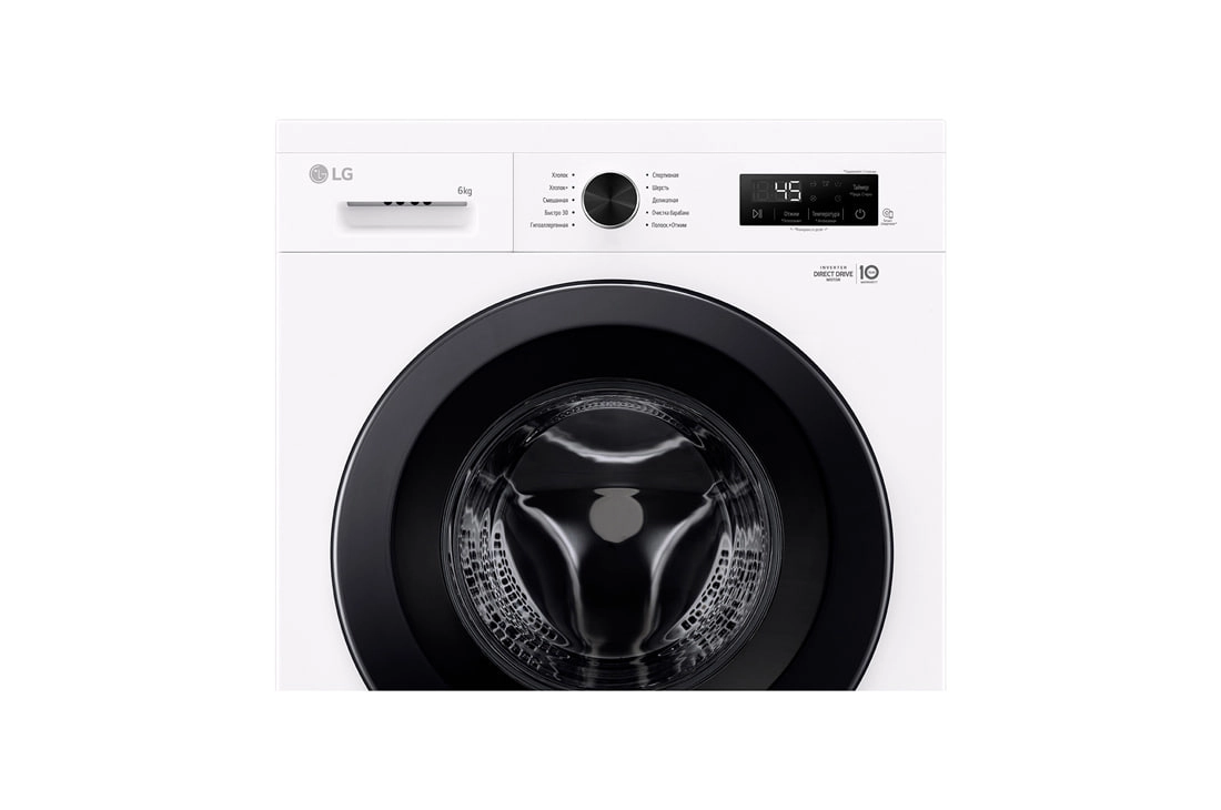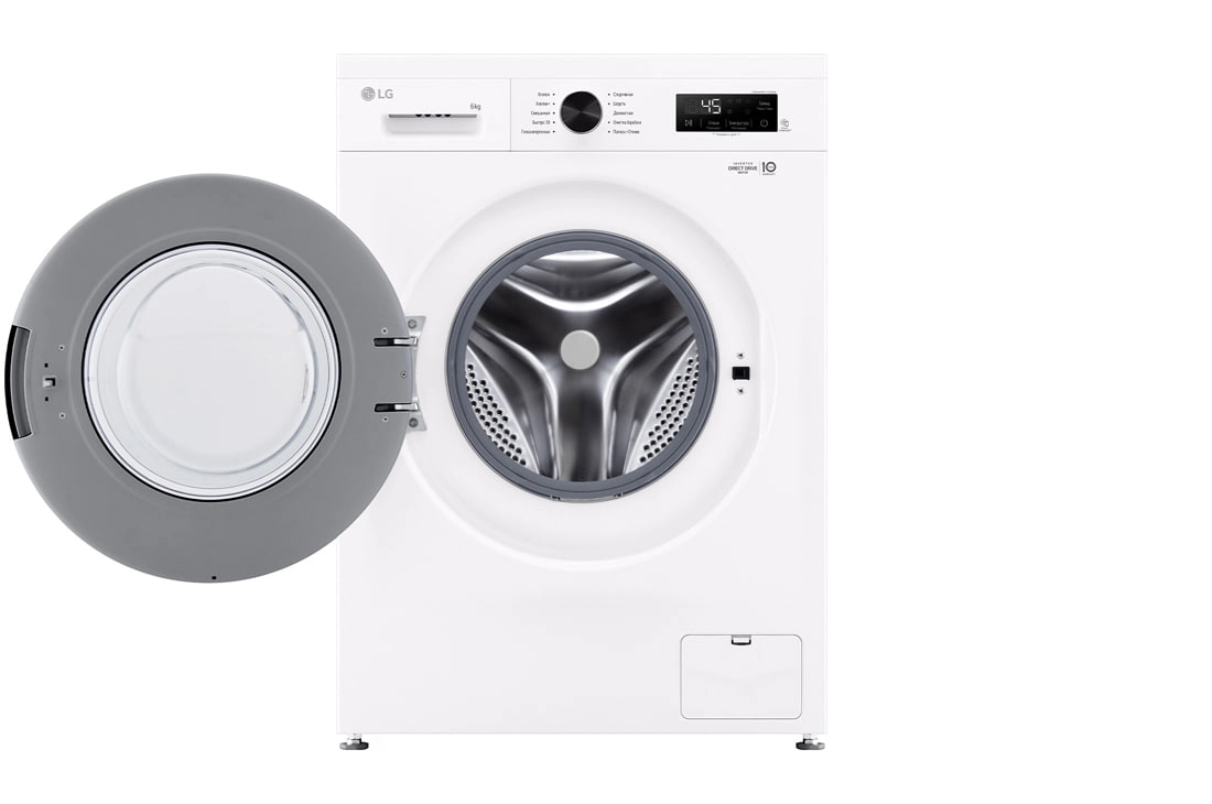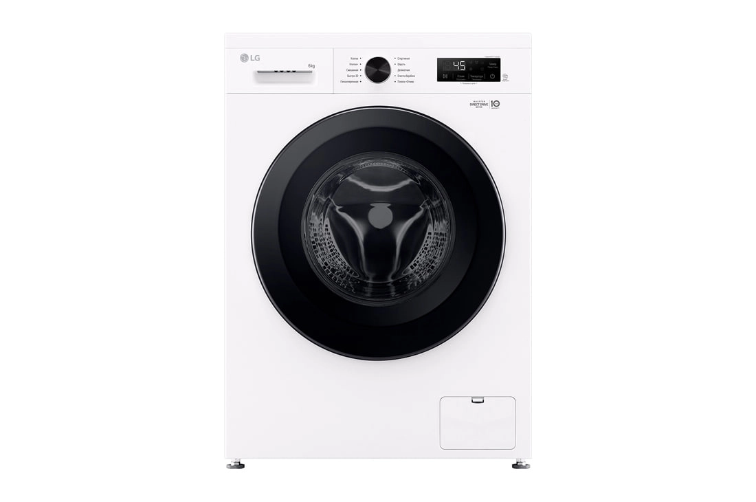 LG F2Y1NS6W oldindan yuklanadigan kir yuvish mashinasi, oq rangda — 2–3 kishilik oila uchun ideal tanlov. 6 kg gacha kir yuvish sig‘imi har kuni yuvish ishlarini oson bajarishga imkon beradi.