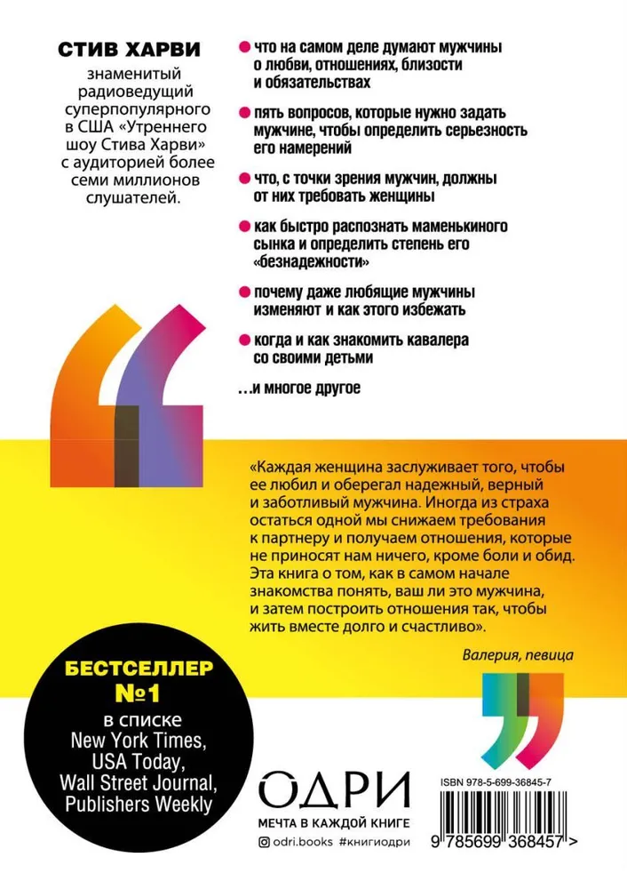 Почему даже самые умные, успешные и привлекательные женщины не всегда понимают поступки мужчин и несчастливы в личной жизни? По мнению автора этой книги, ведущего суперпопулярной в США радиопередачи, посвященной взаимоотношениям, проблема в том, что женщины обращаются за советом к другим женщинам. Хотя мужчина лучше знает, как найти и удержать мужчину. В этой книге Стив Харви дает прекрасную возможность понять ход мыслей представителей сильного пола, отвечая на множество наболевших вопросов. Например, таких: "Что вы должны, а что не можете требовать от своего мужчины?", "Как распознать маменькиного сыночка, и что делать в этом случае?", "Когда знакомить кавалера со своими детьми?", "Какие пять вопросов нужно задать мужчине, чтобы определить серьезность его намерений?" Забавная, а местами суровая, но всегда правдивая, - эту книгу нужно прочитать, если вы хотите узнать, что на самом деле думают мужчины об отношениях с женщинами. Нас ищут: психология влияния, книга психология, роберт чалдини, нейропсихология, психология отношений, лжи, денег, саморазвитие, для женщин, общая, эмоций, клиническая, возрастная, общения, социальная, пол экман, майерс, научно-популярная литература.