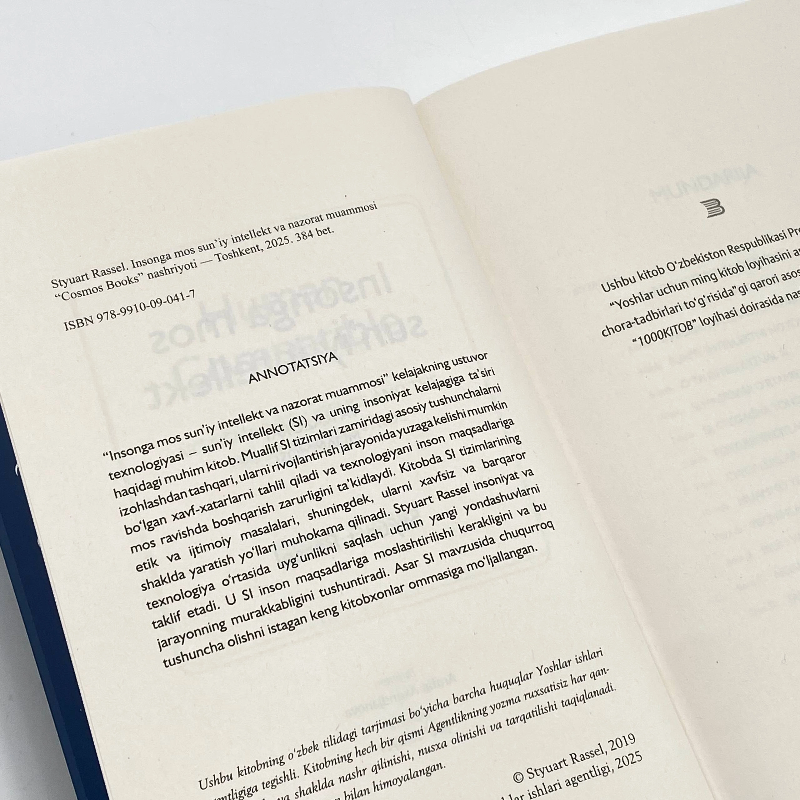 Сунъий интеллект нафақат иқтисодиёт ва инсоний муносабатларга, балки сивилизациянинг ўзига ҳам улкан таҳдиддир. Тадқиқотчи Стюарт Расселл бу зиддиятдан қочиш мумкинлигини таъкидлайди. Муаллиф мазкур китобида одамлар сунъий интеллектдан қандай фойдаланишларини, унга нимани ўргатишлари мумкинлигини ёзади. Агарда ғайритабиий сунъий интеллект пайдо бўлгудек бўлса, биз ўзимиздан анча кучлироқ мавжудотга дуч келамиз. Қандай қилиб одам унга бўйсунмаслигига ишонч ҳосил қилиш керак? Китоб шу каби саволларга жавоб беради.