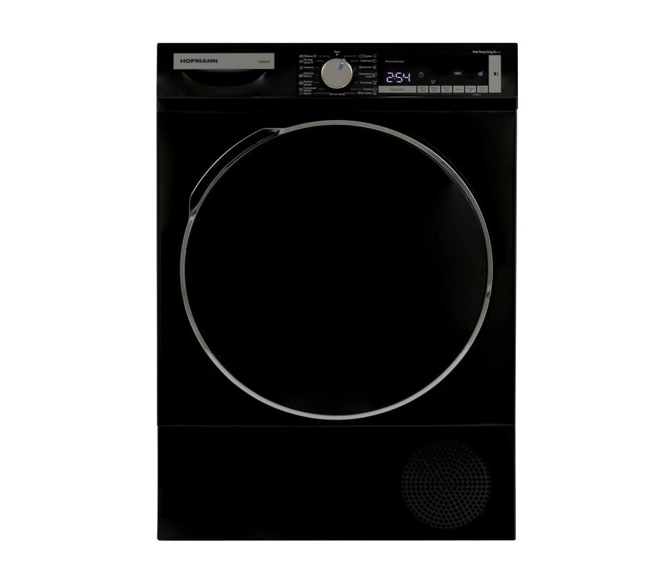 Hofmann TD8BK/HF elektron va sensorli boshqaruv tizimi bilan jihozlangan va qulay displeyga ega. 15 ta quritish dasturi mavjud: Ko‘ylak 20, Tez quritish 34, Yangi havo, Junni yangilash, Yuqori kiyim, Sport, Yostiqlar, Paxta, Sintetika +, Delikat, Aralash, Sochiqlar, Gigiyena, Qurish vaqti, Bolalar. Ovozli signal sikl tugaganda xabar beradi.