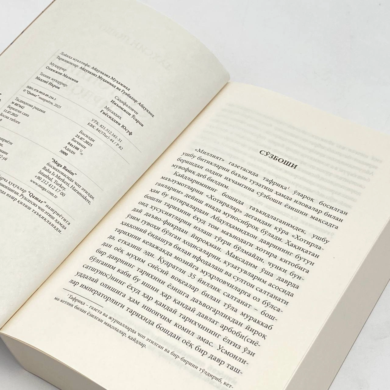 Tahsin poshoning «Xotirot»ini soddalashtirilgan tilda chop etishni lozim deb bildik. Ba’zi bo‘limlarda mavzularning uzviy bo‘lmagani, ba’zi bo‘limlarda esa sarlavhasiz berilgani matnning asliga muvofiq bo‘lishi uchundir. Bo‘limlarni tartiblashda ba’zi kichik o‘zgarishlar qilingan. O‘kuvchi zerikmasligi uchun qisqa ma’lumotlarning har biriga alohida sarlavha qo‘yilmagan.