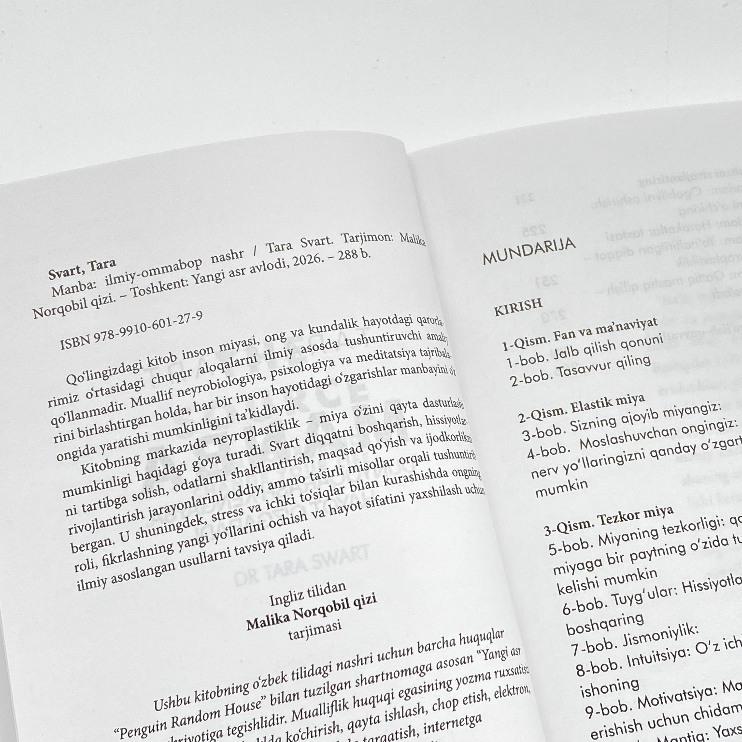 Ушбу китоб инсон мияси, онг ва кундалик ҳаётдаги қарорларимиз ўртасидаги чуқур алоқаларни илмий асосда тушунтирувчи амалий қўлланмадир. Муаллиф нейробиология, психология ва медитация тажрибаларини бирлаштирган ҳолда, ҳар бир инсон ҳаётидаги ўзгаришлар манбайини ўз онгида яратиши мумкинлигини таъкидлайди. Китобнинг марказида нейропластиклик - мия ўзини қайта дастурлаши мумкинлиги ҳақидаги ғоя туради. Сварт диққатни бошқариш, ҳиссиётларни тартибга солиш, одатларни шакллантириш, мақсад қўйиш ва ижодкорликни ривожлантириш жараёнларини оддий, аммо таъсирли мисоллар орқали тушунтириб берган. У шунингдек, стресс ва ички тўсиқлар билан курашишда онгнинг роли, фикрлашнинг янги йўлларини очиш ва ҳаёт сифатини яхшилаш учун илмий асосланган усулларни тавсия қилади.