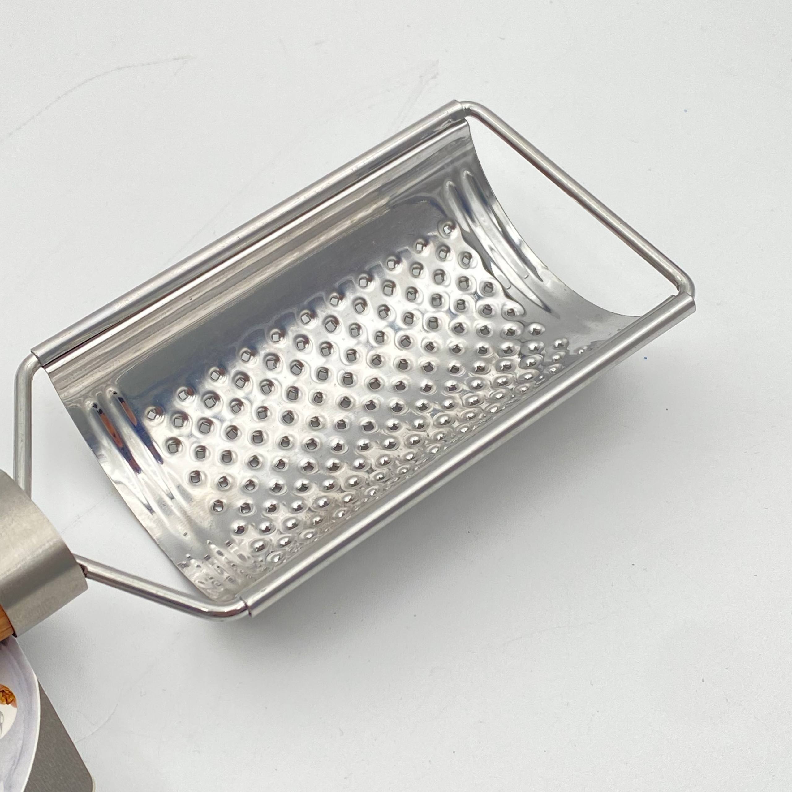 Терка изготовлена из прочного металла, который обеспечивает долговечность и надежность в использовании. Удобная форма и компактный размер делают её практичной для ежедневного использования на кухне. Поверхность легко очищается и быстро моется после использования.