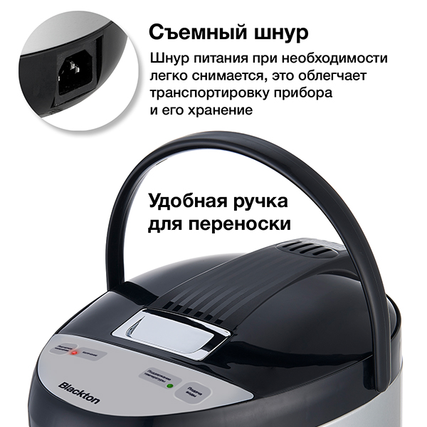 Термопот Blackton Bt TP536 — это удобный и практичный прибор для дома или офиса, позволяющий всегда иметь под рукой горячую воду для чая, кофе или других напитков. Он сочетает современный дизайн, надёжность и простоту использования.