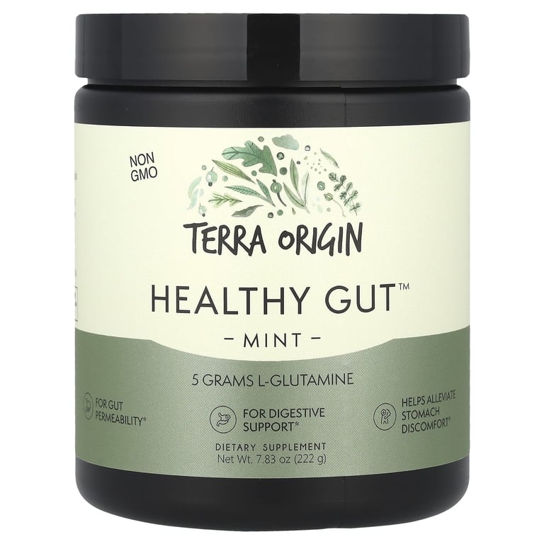 Terra Origin Healthy Gut™ Mint — это функциональная пищевая добавка для комплексной поддержки ЖКТ, нормализации пищеварения и укрепления кишечного барьера. Формула разработана на основе научно подтверждённых нутрицевтиков и содержит 5 г L-глютамина в каждой порции, а также цинк-карнозин PepZinGI®, аминокислоты и растительные экстракты.