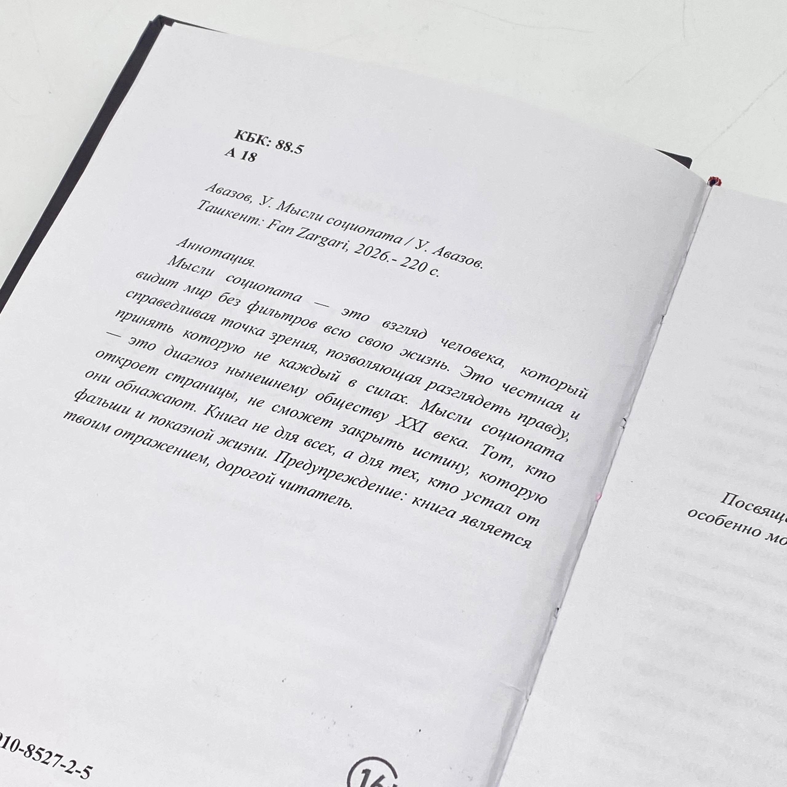 Умид Авазов: Мысли социопата. Философия чужака sizga ma’qul kelmadimi, yoki hali ham ikkilanyapsizmi? Mutaxassislarimiz tanlov qilishda sizga yordam beradi. Keling, mutaxassis bilan bog‘lanib, fikrini tinglaylik.