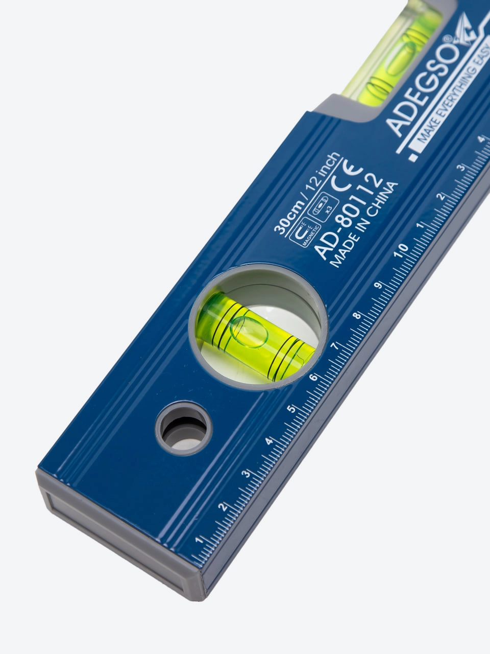 ADEGSO AD-80112 — bu 30 sm uzunlikdagi qurilish urovni, kichik ta’mirlash, mebel yig‘ish va tor joylarda aniq o‘lchash uchun mo‘ljallangan. Ixcham o‘lchami va yengil vazni uni doim yoningizda olib yurish uchun qulay qiladi.