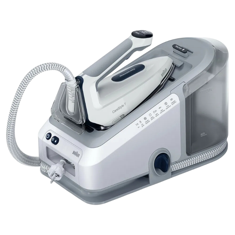 Braun CareStyle 7 — самый мощный парогенератор Braun, обеспечивающий профессиональные результаты глажки в домашних условиях. Благодаря инновационной технологии PowerSteam устройство создаёт мощную и стабильную подачу пара, легко разглаживая даже самые сложные складки на плотных тканях.