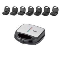 Sonifer SF-6155 7-in-1 — bu tez va oson turli taomlarni tayyorlashni xohlovchilar uchun ideal tanlov. Ertalab — yangi vafli, tushda — xushbo‘y sendvichlar, kechqurun esa mazali keks yoki pechenye. Panellar osongina chiqariladi va o‘rnatiladi, kompakt o‘lcham esa qurilmani har qanday oshxonada saqlash imkonini beradi.