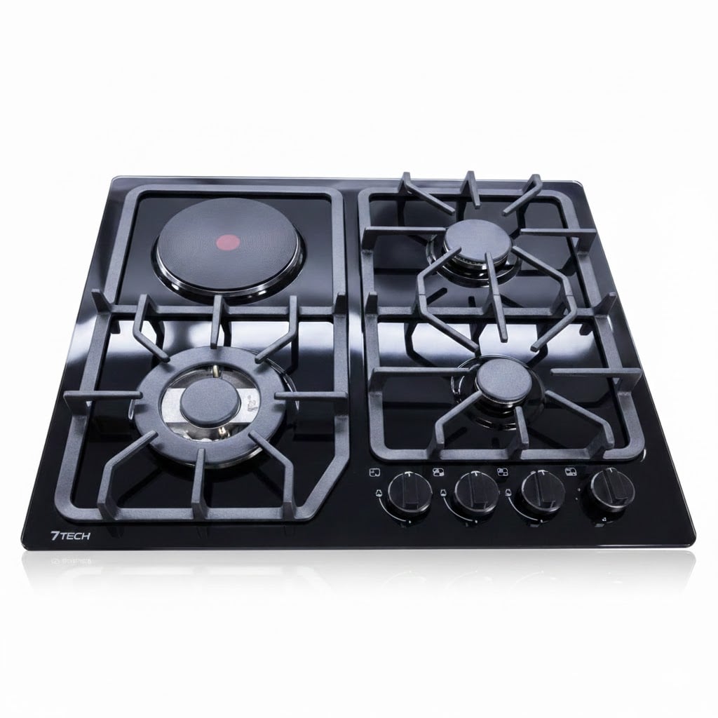Варочная панель 7TECH 7GH4G60EBES2 — это практичная и функциональная модель для современной кухни, сочетающая газовые и электрические конфорки для максимального удобства приготовления.