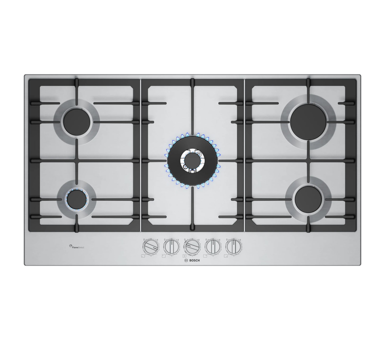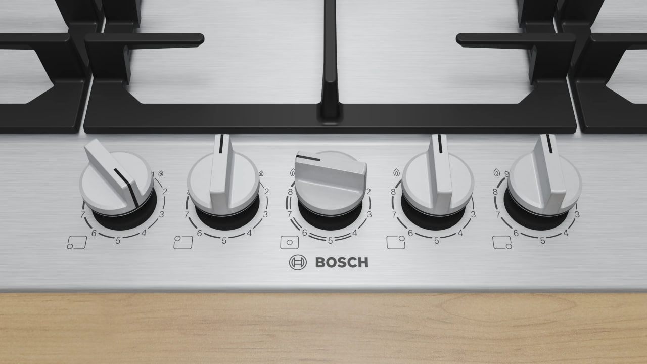 Bosch PCR9A5I90M — это мощная и надёжная газовая варочная панель, сочетающая профессиональный потенциал, точное управление пламенем и долговечные материалы, идеально подходящая для тех, кто часто и много готовит.