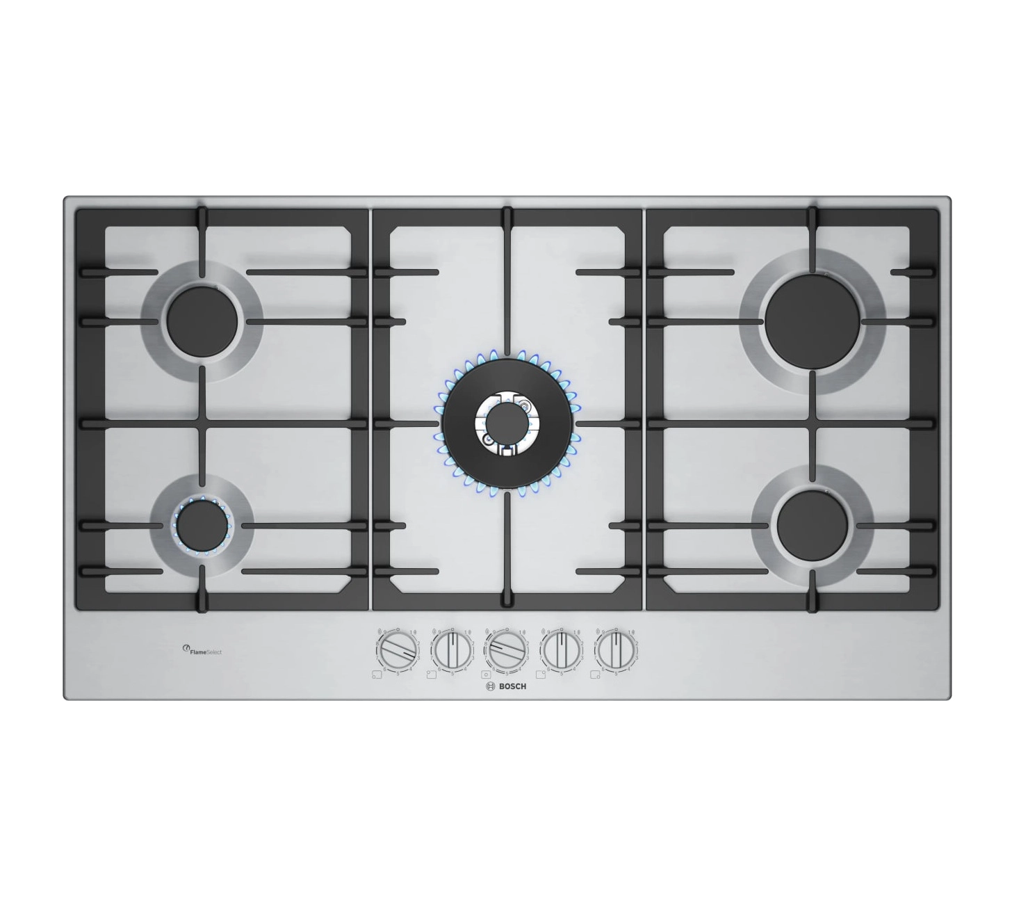 Kengligi 90 sm bo‘lgan Bosch PCR9A5I90M gazli pishirish paneli keng oshxonalar va intensiv pishirish uchun mo‘ljallangan. Ishchi yuzasi zanglamaydigan po‘latdan tayyorlangan bo‘lib, mustahkamligi, yuqori haroratga chidamliligi va parvarish qilishning osonligi bilan ajralib turadi hamda faol foydalanishda ham toza ko‘rinishini saqlab qoladi. Ramkasiz konstruktsiya panelning ixcham va zamonaviy dizaynini ta’kidlab, ishchi hududning yaxlit ko‘rinishini ta’minlaydi.