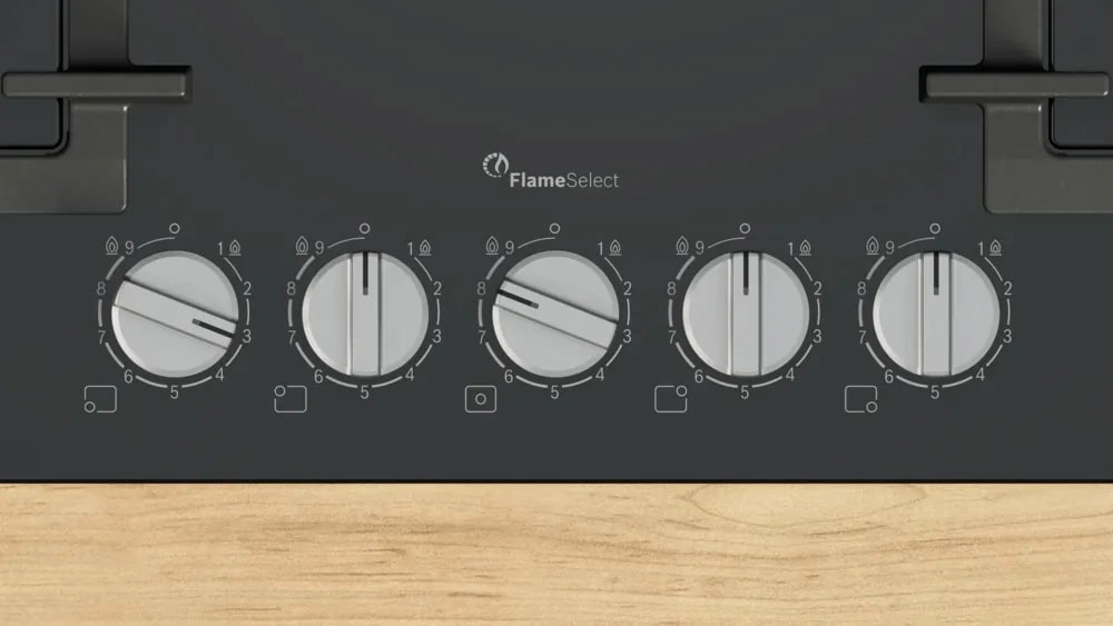 Boshqaruv burilish tugmalari orqali amalga oshiriladi, intuitiv va qulay. FlameSelect tizimi bilan 9 quvvat darajasi issiqlikni aniq nazorat qilish imkonini beradi. Elektr podzhig tugmalarga integratsiyalangan bo‘lib, gazni avtomatik yoqadi, gaz-kontrol va termoelektr himoya tizimi pishirish jarayonida gaz o‘chib qolsa, avtomatik ravishda yoqilg‘ini to‘xtatadi, bu xavfsizlikni oshiradi.
