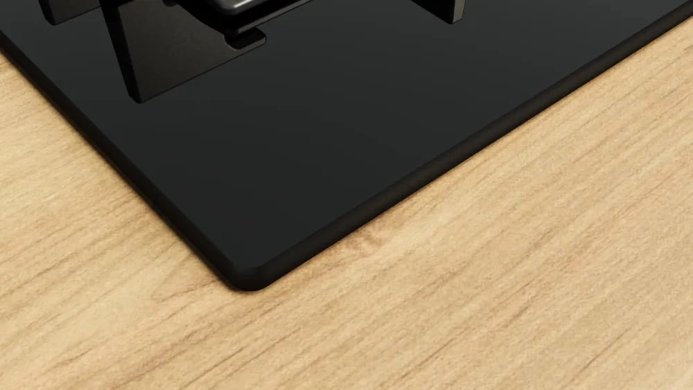 Gazli pishirish paneli Bosch PPQ7A6I45 **qora shisha (zakalennoye steklo)**dan tayyorlangan bo‘lib, oshxonaga chuqurlik va kontrast beradi, minimalist dizayn esa har qanday stol usti bilan uyg‘unlashadi. Panelning balandligi 5.8 sm, tekis qirralari va puxta joylashtirilgan elementlari engil va estetik ko‘rinish beradi. Stol usti bilan teng darajada o‘rnatish imkoniyati mavjud bo‘lib, zamonaviy oshxona mebeliga mukammal integratsiya qilish imkonini beradi. Panel uchun mos nisha o‘lchamlari: kengligi 56–56.2 sm, chuqurligi 48–49 sm, minimal stol usti qalinligi 30 mm.