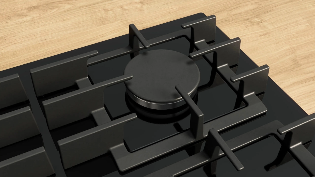 Kengligi 90 sm bo‘lgan ushbu gazli pishirish paneli zakalennoye shishadan tayyorlangan bo‘lib, jozibali tashqi ko‘rinishni yuqori mustahkamlik va haroratga chidamlilik bilan uyg‘unlashtiradi. Ramkasiz dizayn panelga zamonaviy va minimalist uslub bag‘ishlaydi hamda uni vizual jihatdan yengil ko‘rsatadi. Silliq yuzasi oson tozalanadi va keng oshxonalar hamda oshxona orollari uchun juda mos keladi.