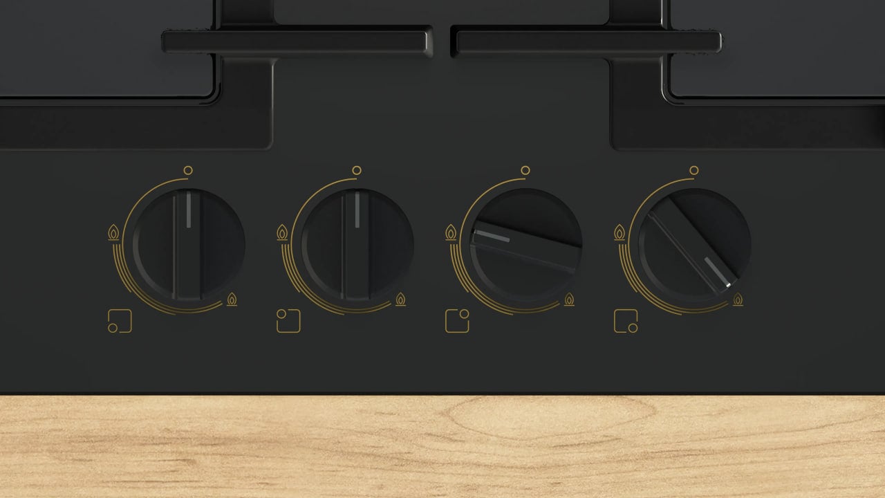Управление панелью осуществляется поворотными механическими переключателями, а электроподжиг встроен в ручки управления. Панель рассчитана на работу как с природным газом (H/E/L 20(25) мбар), так и со сжиженным газом (G30,31 28-30/37 мбар), а в комплекте идут необходимые форсунки для перевода.