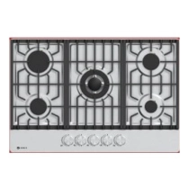 Для надёжности и устойчивости панель оснащена чугунными решётками, обеспечивающими стабильное положение посуды даже при интенсивной готовке. Управление осуществляется с помощью металлических ручек (metal knob) — они прочные, удобные и позволяют точно регулировать уровень пламени.