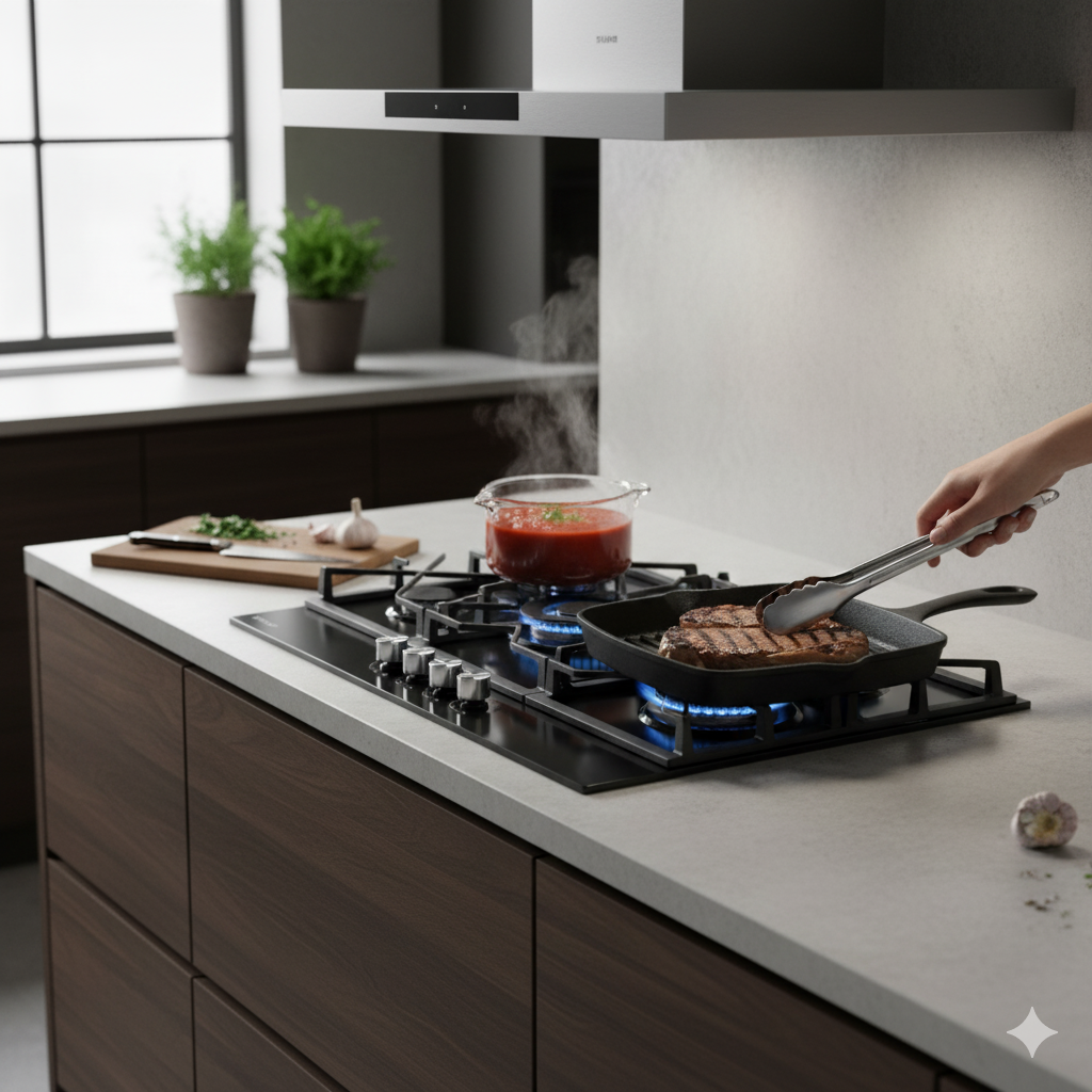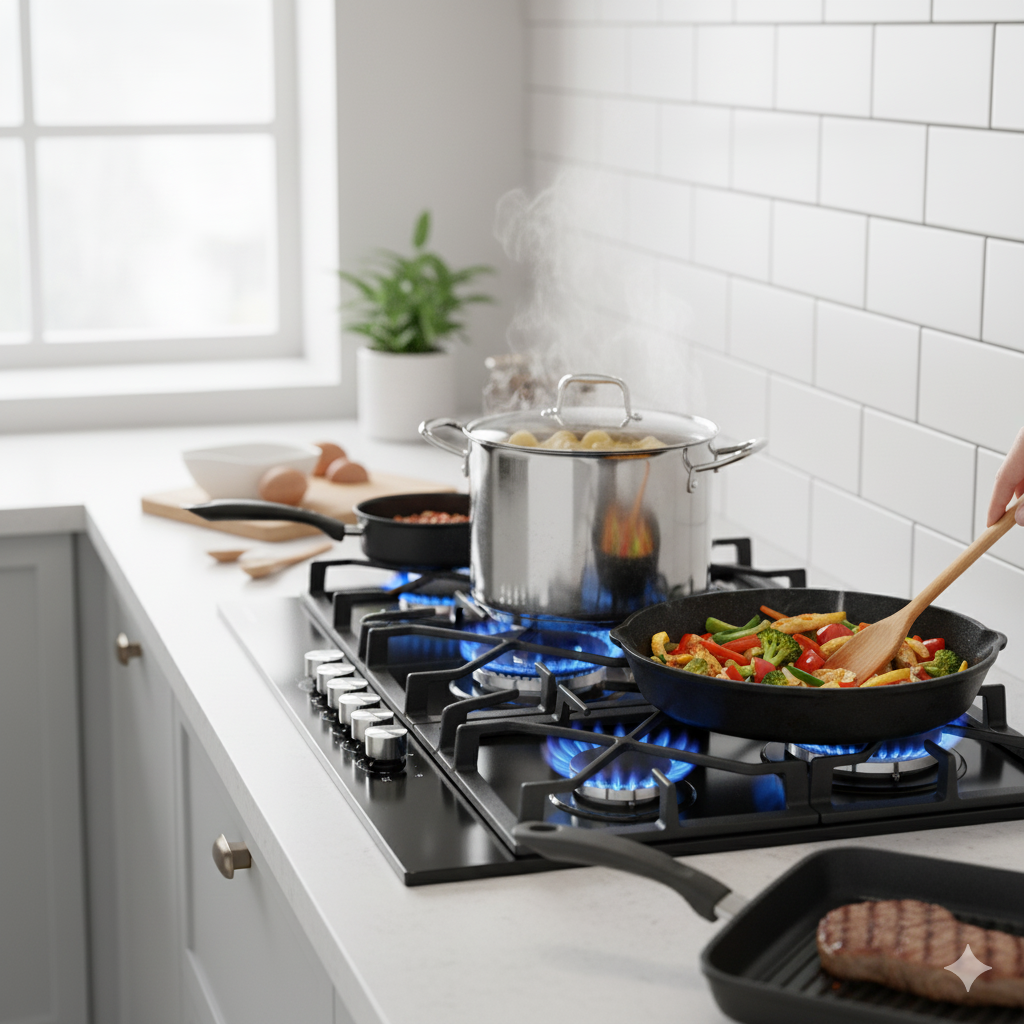 Чугунные решётки — уверенная устойчивость даже для массивной посуды.