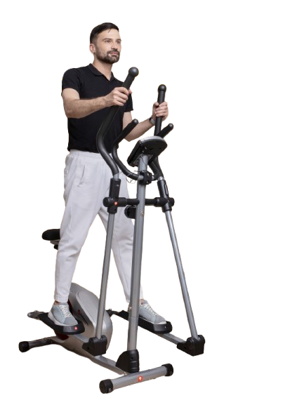 Эллиптический тренажёр имитирует движения, близкие к ходьбе или лёгкому бегу, но без ударной нагрузки на коленные и тазобедренные суставы. Это делает его безопасным вариантом кардио‑тренировок для людей с чувствительными суставами или тех, кто восстанавливается после травм.