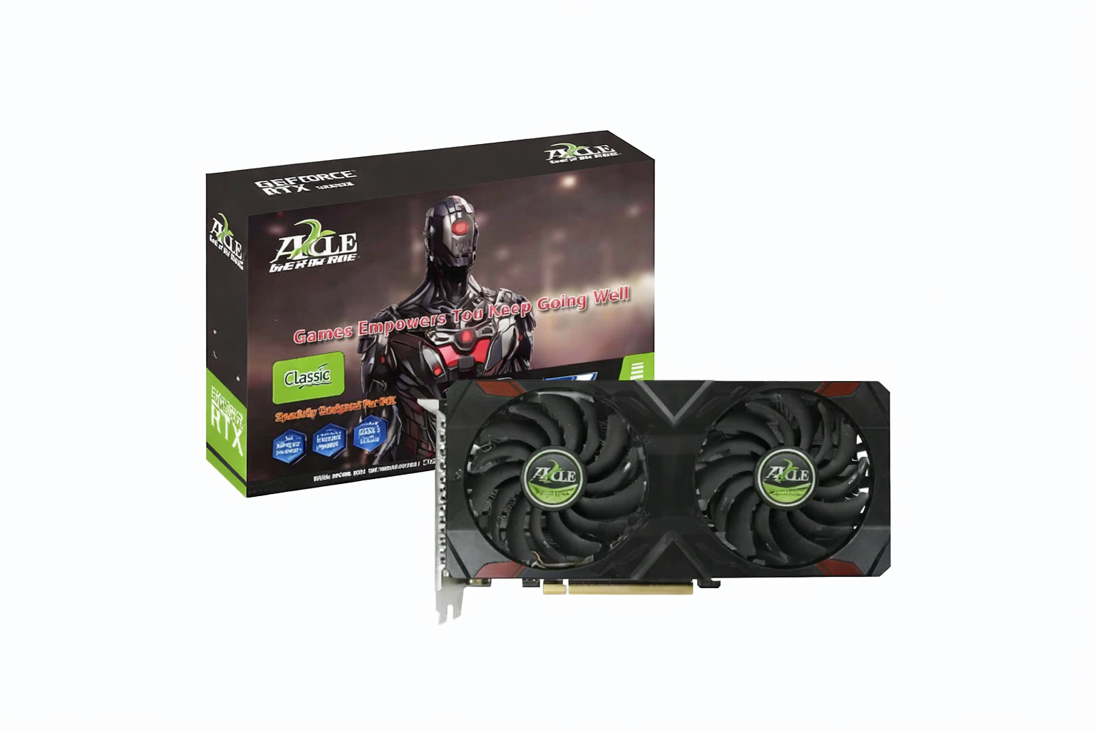 Бренд Axle сочетает эти характеристики со своими фирменными системами охлаждения (чаще всего с двух- или трёхвентиляторным дизайном) и прочной конструкцией, обеспечивая надёжную и эффективную работу видеокарты.