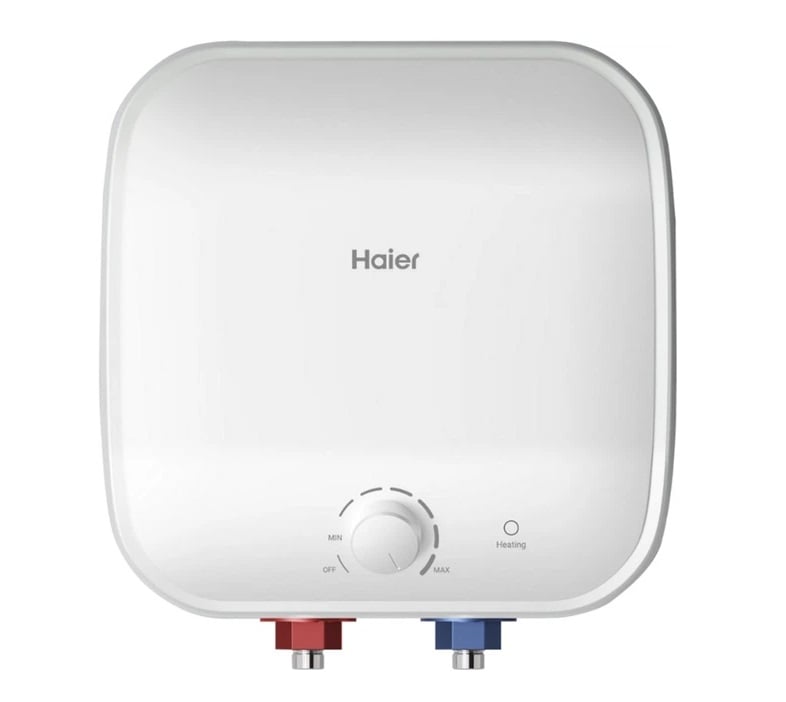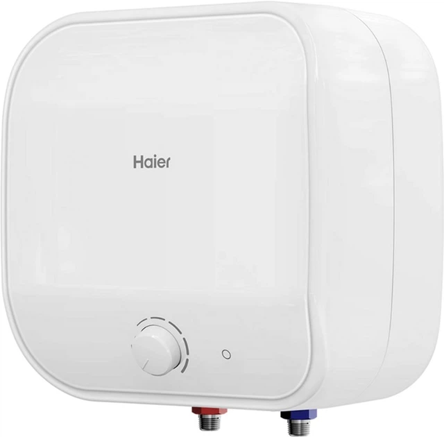 Бойлер Haier 10 л – компактный и безопасный водонагреватель для установки под мойкой. Модель оснащена мощным ТЭНом 1500 Вт, который нагревает воду до 75 °C всего за 23 минуты. Мокрый открытый ТЭН обеспечивает быстрый и эффективный нагрев, а механический регулятор на корпусе позволяет легко выставить нужную температуру. Внутренний бак выполнен из стали со стеклокерамическим покрытием, устойчивым к коррозии. Форма бака – квадратная, размеры компактные – 36 × 36 × 27 см, вес всего 7 кг, что облегчает установку даже в ограниченном пространстве. Вертикальная установка с нижней подводкой труб оптимально использует место под мойкой.
