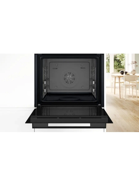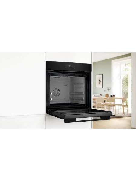 Bosch HJG852YB0T Series 6 elektr o‘rnatiladigan pechi zamonaviy texnologiyalar, qulaylik va mukammal ta’mni qadrlaydiganlar uchun yaratilgan. 8 ta isitish rejimi va 30–275 °C harorat oralig‘i pishiriqlar, go‘sht, pitsa va foydali Air Fry taomlarini oson tayyorlashga yordam beradi. 76 litr hajm oilaviy kechki ovqatlar va mehmonlar uchun juda qulay. Oq LED-displeyli sensorli boshqaruv intuitiv ishlashni ta’minlaydi, tez qizdirish esa vaqtingizni tejaydi. Ikki juft suriluvchi rels va boy komplektatsiya kundalik foydalanish imkoniyatlarini kengaytiradi.