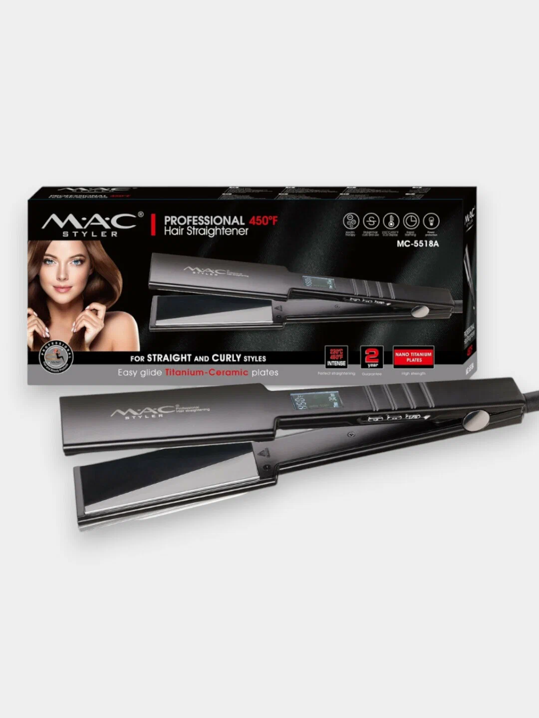 Выпрямитель для волос MAC Styler MC-5518A — универсальный стайлер, который помогает добиться гладких и ухоженных волос дома или в салоне. Благодаря титанокерамическому покрытию пластин, режимам регулировки температуры и лёгкому дизайну, он подходит как для ежедневной укладки, так и для создания лёгких волн или локонов.