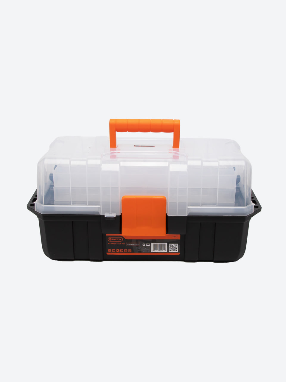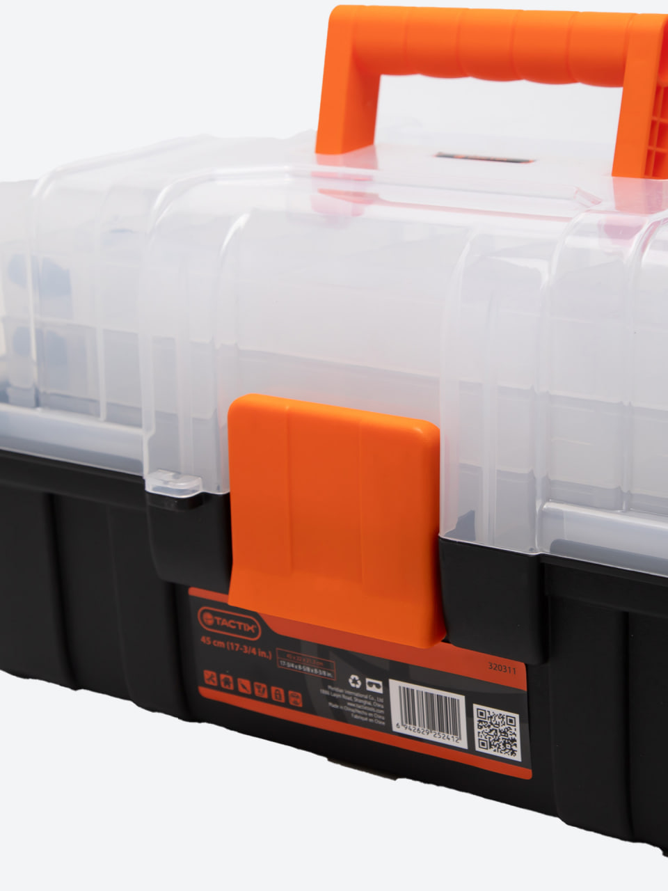 TACTIX 320311 — это удобный пластиковый ящик с прозрачной крышкой и многоуровневой системой лотков. Он идеально подходит для хранения мелких инструментов, крепежа, гвоздей, болтов, шурупов, а также рыболовных снастей и аксессуаров.