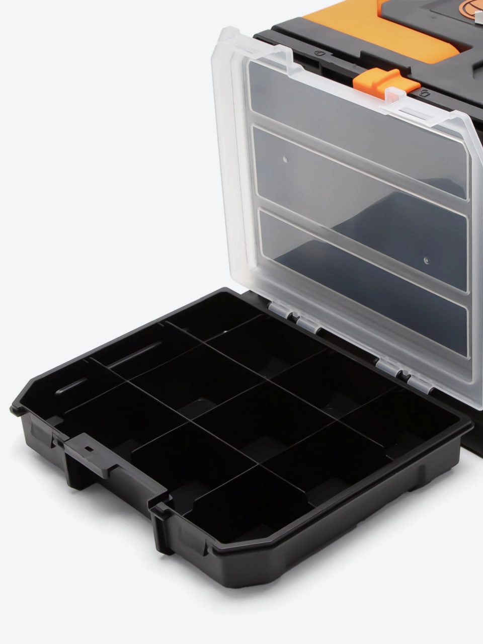Tactix 320348 — bu ixcham va funksional asboblar organayzeri, mixlar, vintlar, shaybalar, mahkamlash elementlari va boshqa kichik detallarni tartibli saqlash uchun mo‘ljallangan. Mustahkam materiali va ko‘p bo‘linmali tuzilishi tufayli u professional ustalar va havaskorlar uchun ishonchli yordamchidir.