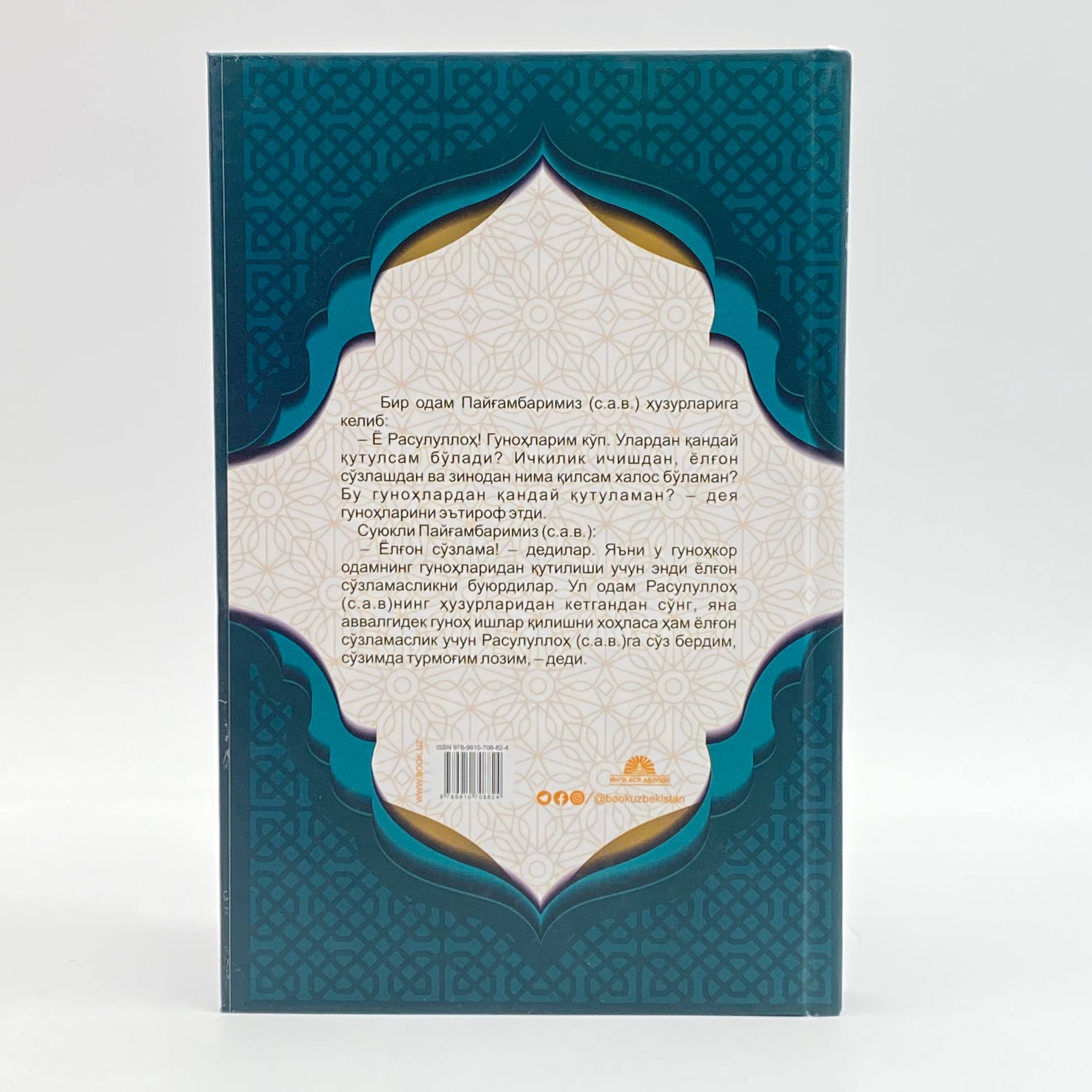 1 год гарантии от производителя Примем товары в течении 10 дней и сразу вернём деньгиКитоб иймон, ахлоқ ва маънавиятга етакловчи нурли йўлга ўхшайди. Унда Қуръони карим оятлари, Пайғамбаримиз Муҳаммад (с.а.в.) ҳадисларидан ҳамда буюк алломалар ва авлиёларнинг ҳикматли сўзларидан ўринли мисоллар келтиради. Ҳар бир ҳикмат ҳаётий воқеалар билан боғланиб, содда ва таъсирчан тилда шарҳланади.