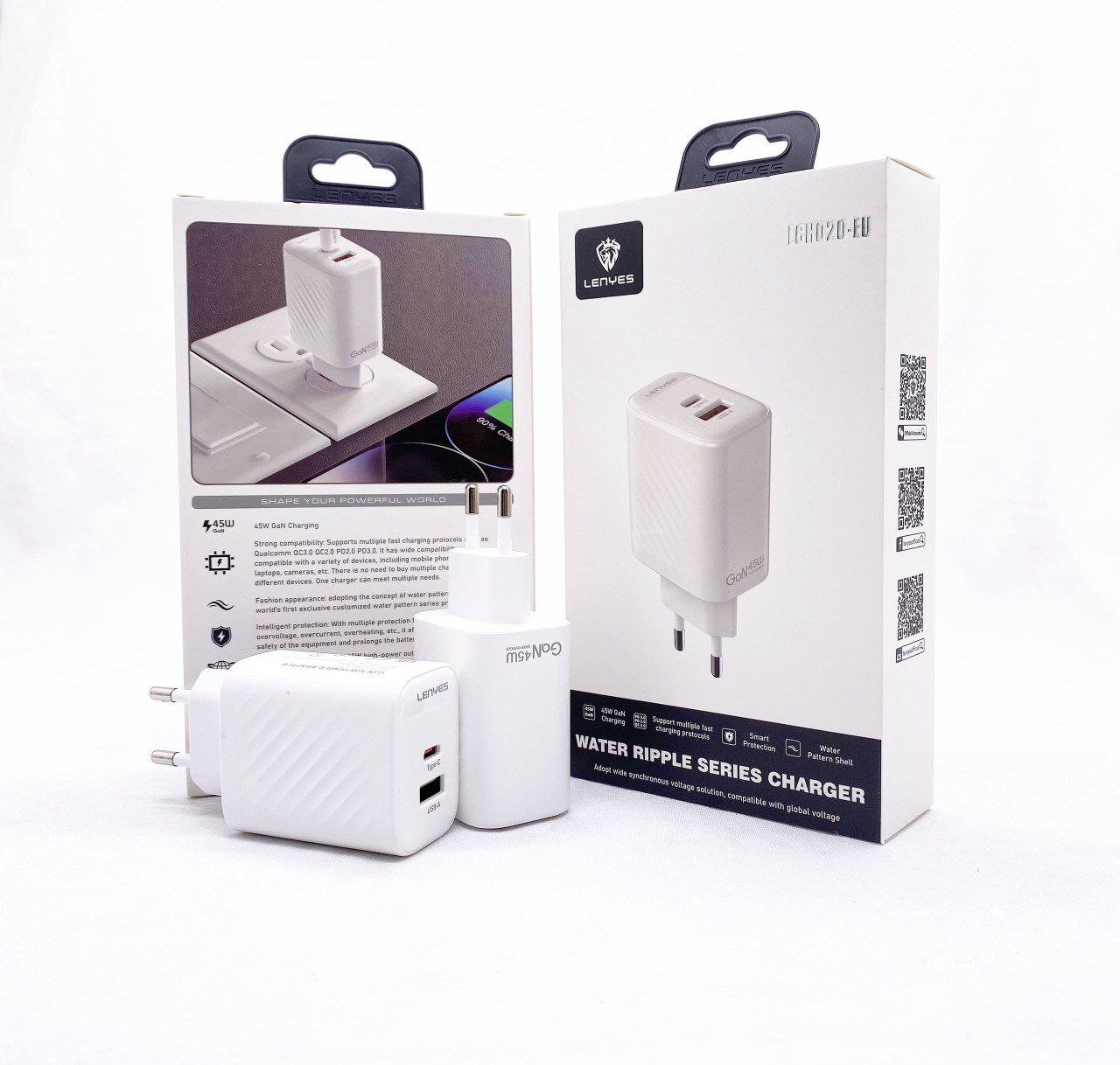LENYES LCH020-EU 45W – это современное сетевое зарядное устройство с поддержкой Power Delivery 45W, которое позволяет максимально быстро и безопасно заряжать смартфоны, планшеты, ноутбуки и другие гаджеты дома, в офисе или в поездке.