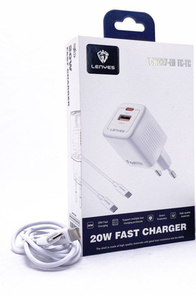 Зарядное устройство LENYES LCH027-EU TC-TC 2x1 USB/PD Type-C 20W – компактная и быстрая зарядка