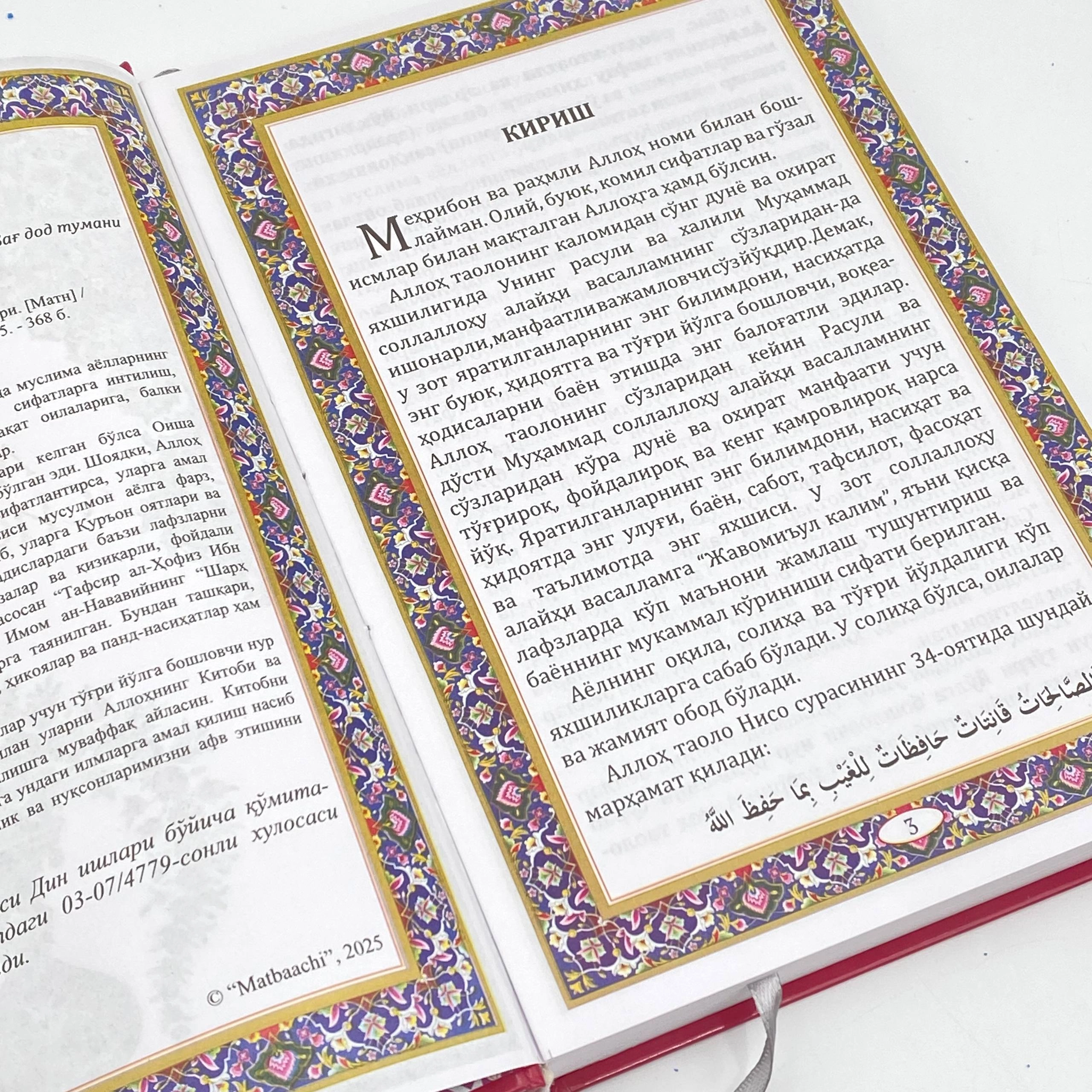 Аллох таолодан бу асарни мўмина аёллар учун тўғри йўлга бошловчи нур бўлишини сўраб қоламиз. Бу китоб билан уларни Аллоҳнинг Китоби ва Расулуллохнинг суннатларига амал қилишга муваффак айласин. Китобни ўкиган жамики мўмина ва муслималарга ундаги илмларга амал килиш насиб этишини тилаймиз. Аллохдан камчилик ва нуқсонларимизни афв этишини сурайман.
