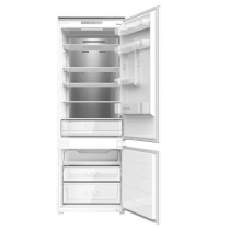 Модель относится к встраиваемому типу, благодаря чему идеально вписывается в кухонный гарнитур и сохраняет единый стиль интерьера. Общий полезный объем 403 литра делает холодильник отличным выбором для семьи: 298 литров отведено под холодильное отделение и 105 литров — под морозильную камеру.