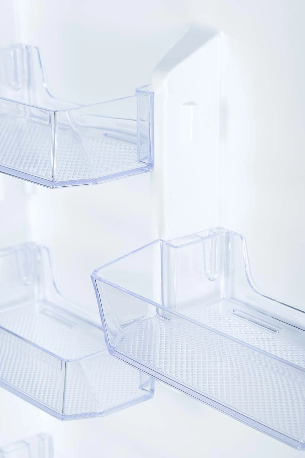 Стеклянные полки основного отделения и четыре удобных дверных полки помогают удобно разложить продукты разных размеров и объёмов. Очень удобно, что две дверные полки имеют изменяемую высоту.