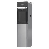 Модель выполнена в стильном сочетании серебристого и чёрного цветов и оснащена тремя кранами подачи воды — холодной, тёплой и горячей, что делает устройство универсальным решением для дома или офиса. Внутренний резервуар из нержавеющей стали гарантирует гигиеничность, долговечность и сохранение качества воды.
