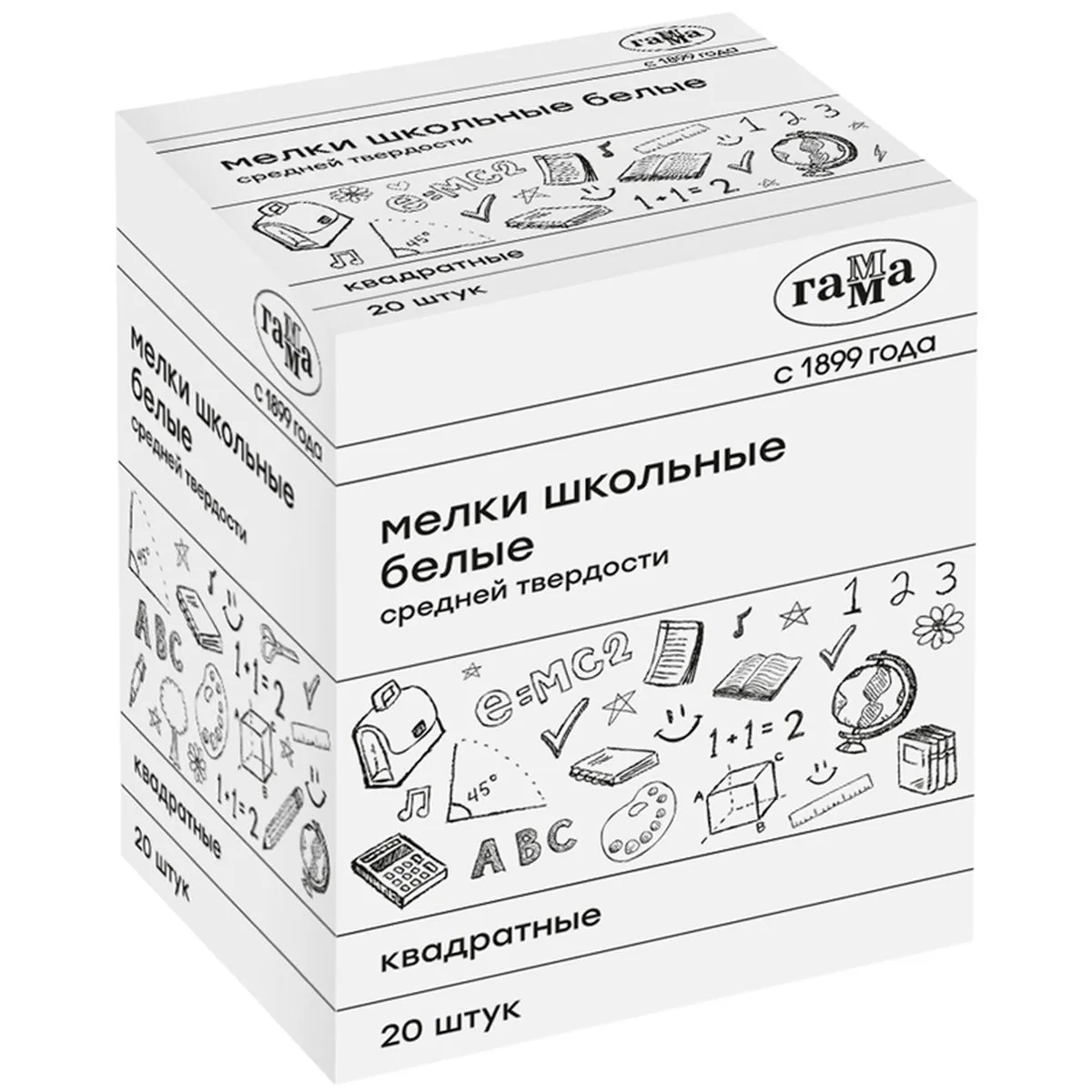 Белые мел для доски Gamma, 20 шт, квадратный (280120215)