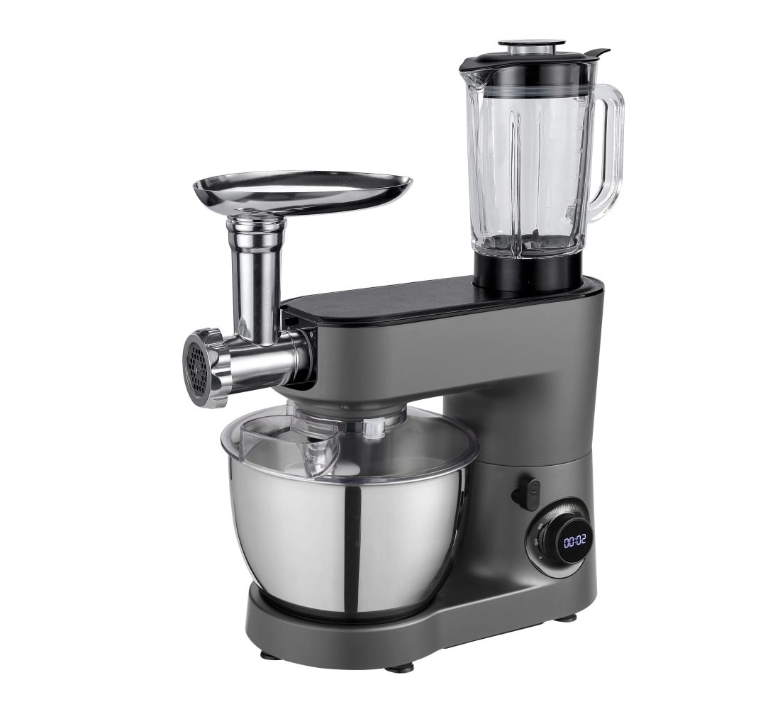 Миксер оснащён вместительной чашей объёмом 6,5 л из нержавеющей стали, что позволяет готовить большие порции за один цикл — идеально для семьи или кулинарных экспериментов. Прочный корпус из ABS-пластика в стильном матовом сером цвете сочетает долговечность и современный дизайн.