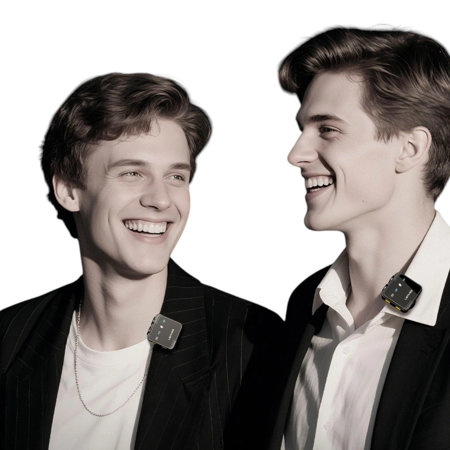 Компактность и автономность: Легкие петлички надежно фиксируются на одежде с помощью клипс и практически незаметны в кадре. Встроенные аккумуляторы обеспечивают до 6 часов непрерывной работы, позволяя проводить длительные съемочные сессии.