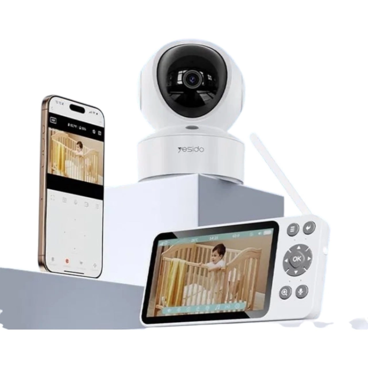Современная видеоняня Yesido KM28 — надежное решение для наблюдения за ребенком. Оснащена 5-дюймовым HD-дисплеем и камерой с поддержкой Wi-Fi и 2.4G соединения, что обеспечивает стабильную передачу видео и звука.